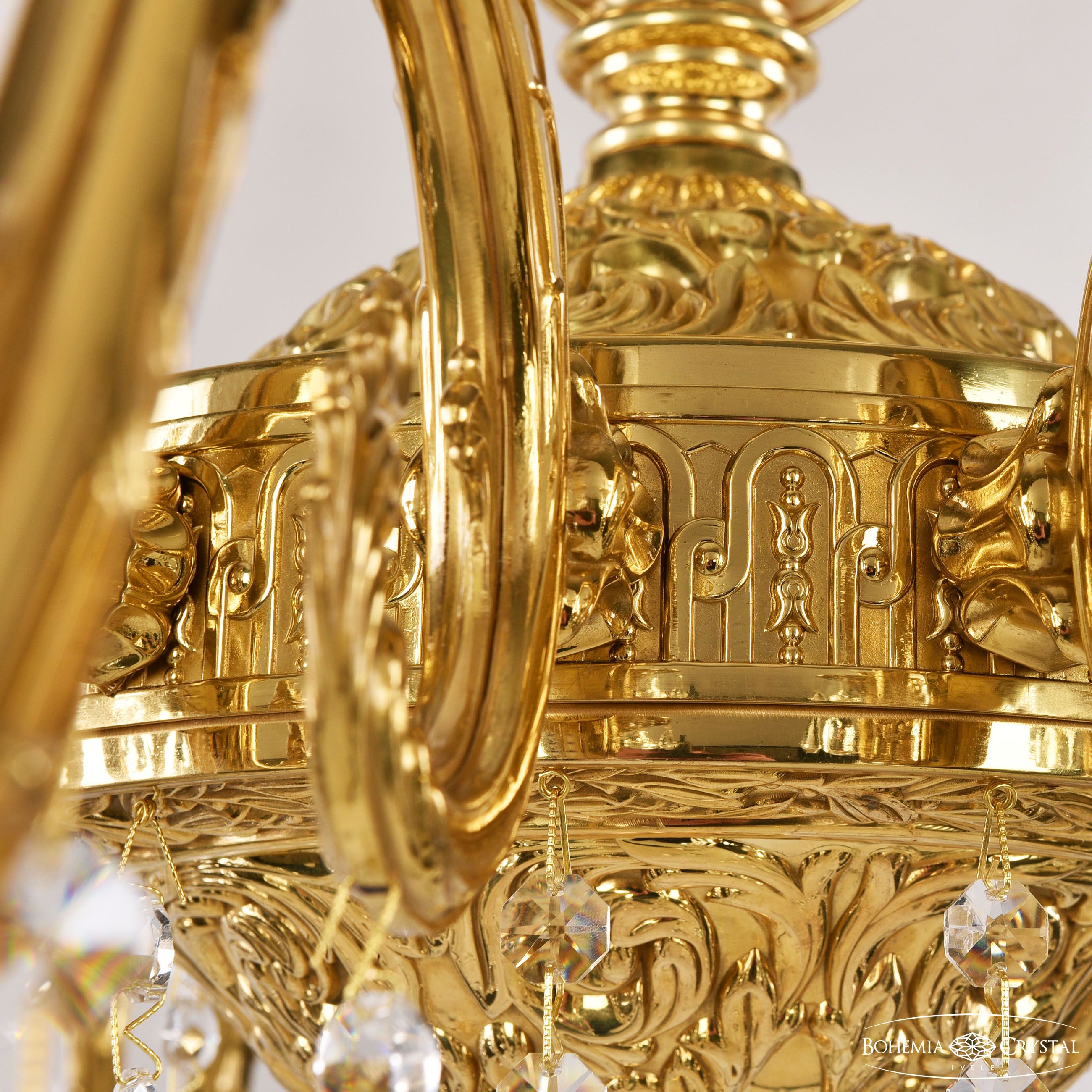 Допускается отличие страны-изготовителя, указанной в характеристиках. Линии производства могут находиться в нескольких государствах. Это не влияет на качество изготовления товара: все заводы данного бренда работают по общим стандартам, а готовые изделия проходят соответствующий контроль.Чехия Коллекция 7101 ЦветЦвет арматуры Золото Цвет Золото Материал арматуры Латунь Цвет декора бесцветный РазмерыВысота (мм) 850 Диаметр (мм) 1090 Ширина (мм) 1090 ЭлектрикаКоличество ламп (шт) 12 Цоколь E14 Мощность лампы (Вт) 40 Дополнительная информацияВес (Кг) 30 Тип подвеса На цепи -