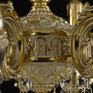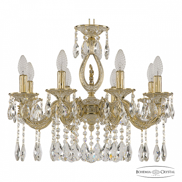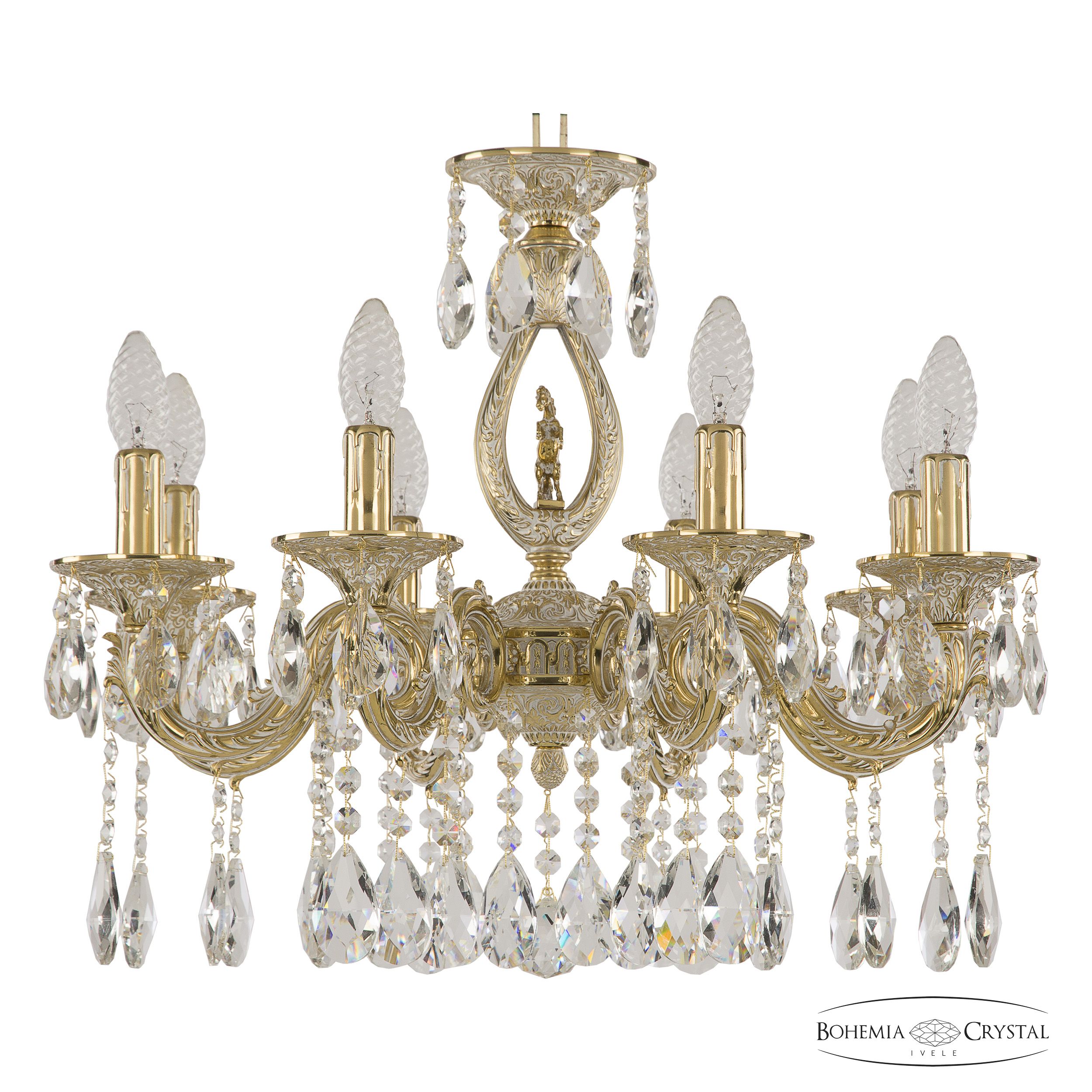 Допускается отличие страны-изготовителя, указанной в характеристиках. Линии производства могут находиться в нескольких государствах. Это не влияет на качество изготовления товара: все заводы данного бренда работают по общим стандартам, а готовые изделия проходят соответствующий контроль.Чехия Коллекция 7101 ЦветЦвет арматуры золото белёное Цвет Золото Материал арматуры Латунь Цвет декора бесцветный РазмерыВысота (мм) 460 Диаметр (мм) 580 Ширина (мм) 580 ЭлектрикаКоличество ламп (шт) 8 Цоколь E14 Мощность лампы (Вт) 40 Дополнительная информацияВес (Кг) 9 Тип подвеса На цепи -