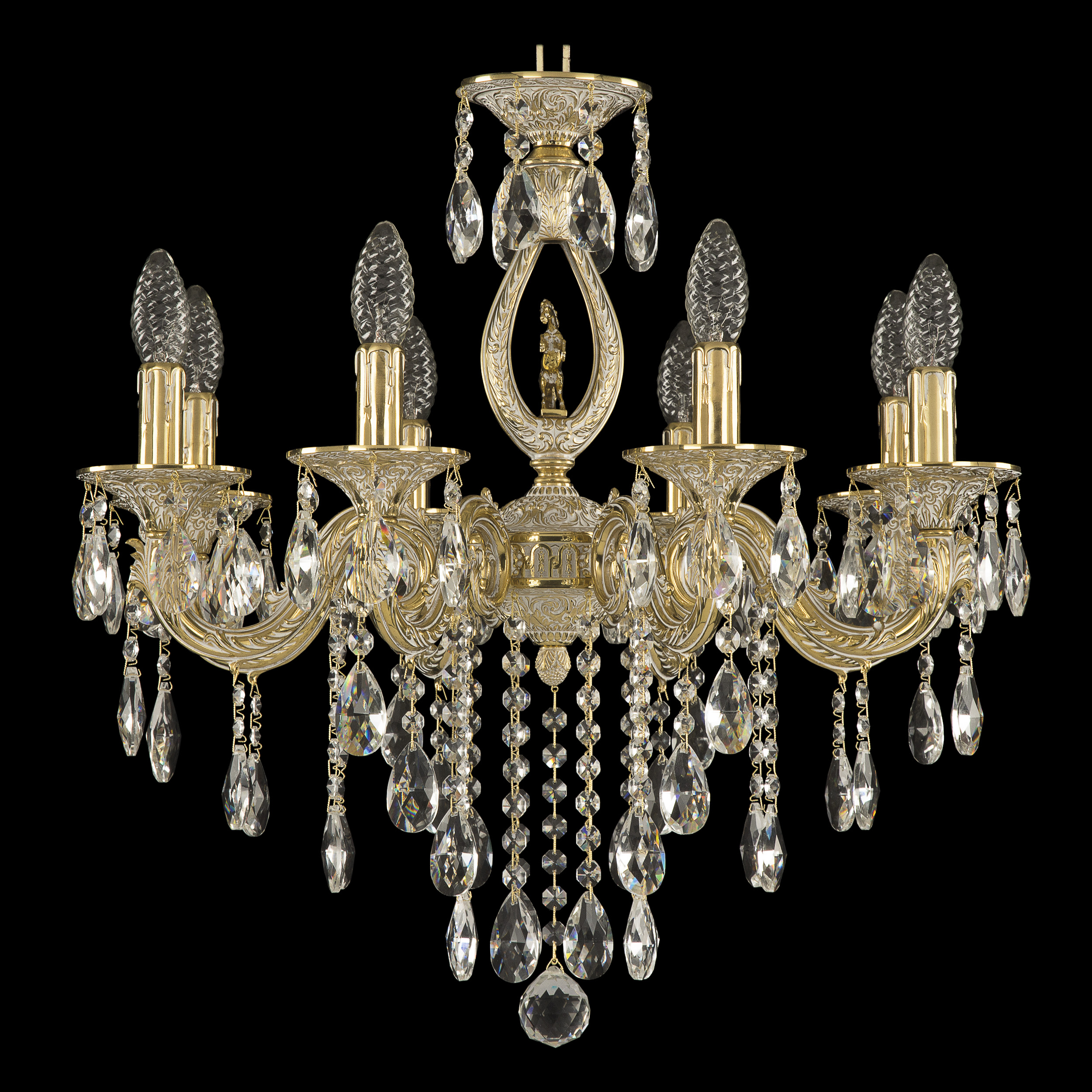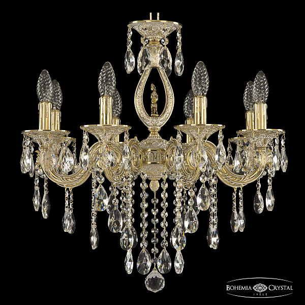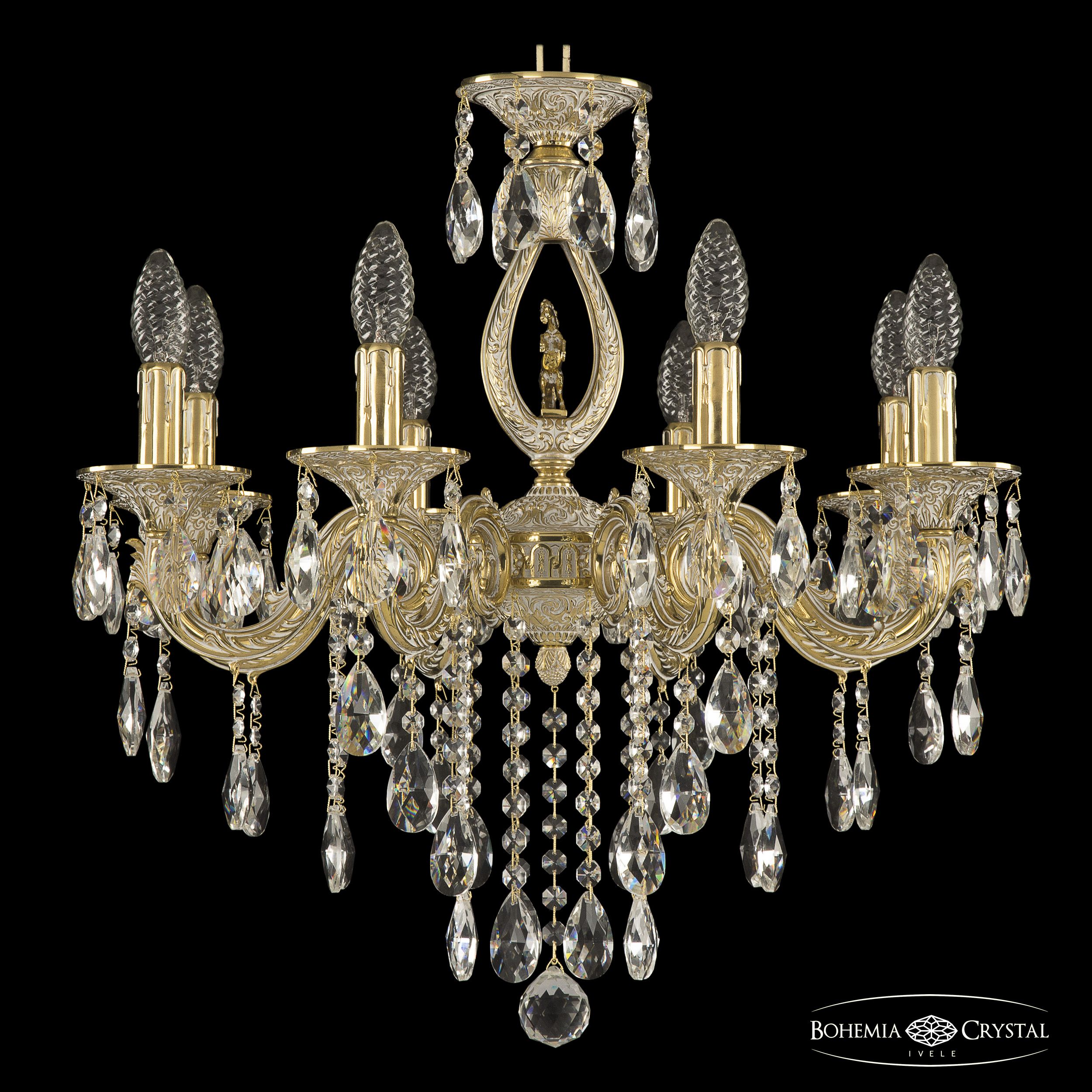 Допускается отличие страны-изготовителя, указанной в характеристиках. Линии производства могут находиться в нескольких государствах. Это не влияет на качество изготовления товара: все заводы данного бренда работают по общим стандартам, а готовые изделия проходят соответствующий контроль.Чехия Коллекция 7101 ЦветЦвет арматуры золото белёное Цвет Золото Материал арматуры Латунь Цвет декора бесцветный РазмерыВысота (мм) 560 Диаметр (мм) 580 Ширина (мм) 580 ЭлектрикаКоличество ламп (шт) 8 Цоколь E14 Мощность лампы (Вт) 40 Дополнительная информацияВес (Кг) 9 Тип подвеса На цепи -