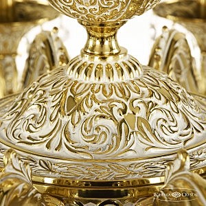 Допускается отличие страны-изготовителя, указанной в характеристиках. Линии производства могут находиться в нескольких государствах. Это не влияет на качество изготовления товара: все заводы данного бренда работают по общим стандартам, а готовые изделия проходят соответствующий контроль.Чехия Коллекция 7102 ЦветЦвет арматуры золото белёное Цвет Золото Материал арматуры Латунь Цвет декора бесцветный РазмерыВысота (мм) 610 Диаметр (мм) 680 Ширина (мм) 680 ЭлектрикаКоличество ламп (шт) 10 Цоколь E14 Мощность лампы (Вт) 40 Дополнительная информацияВес (Кг) 12 Тип подвеса На цепи -
