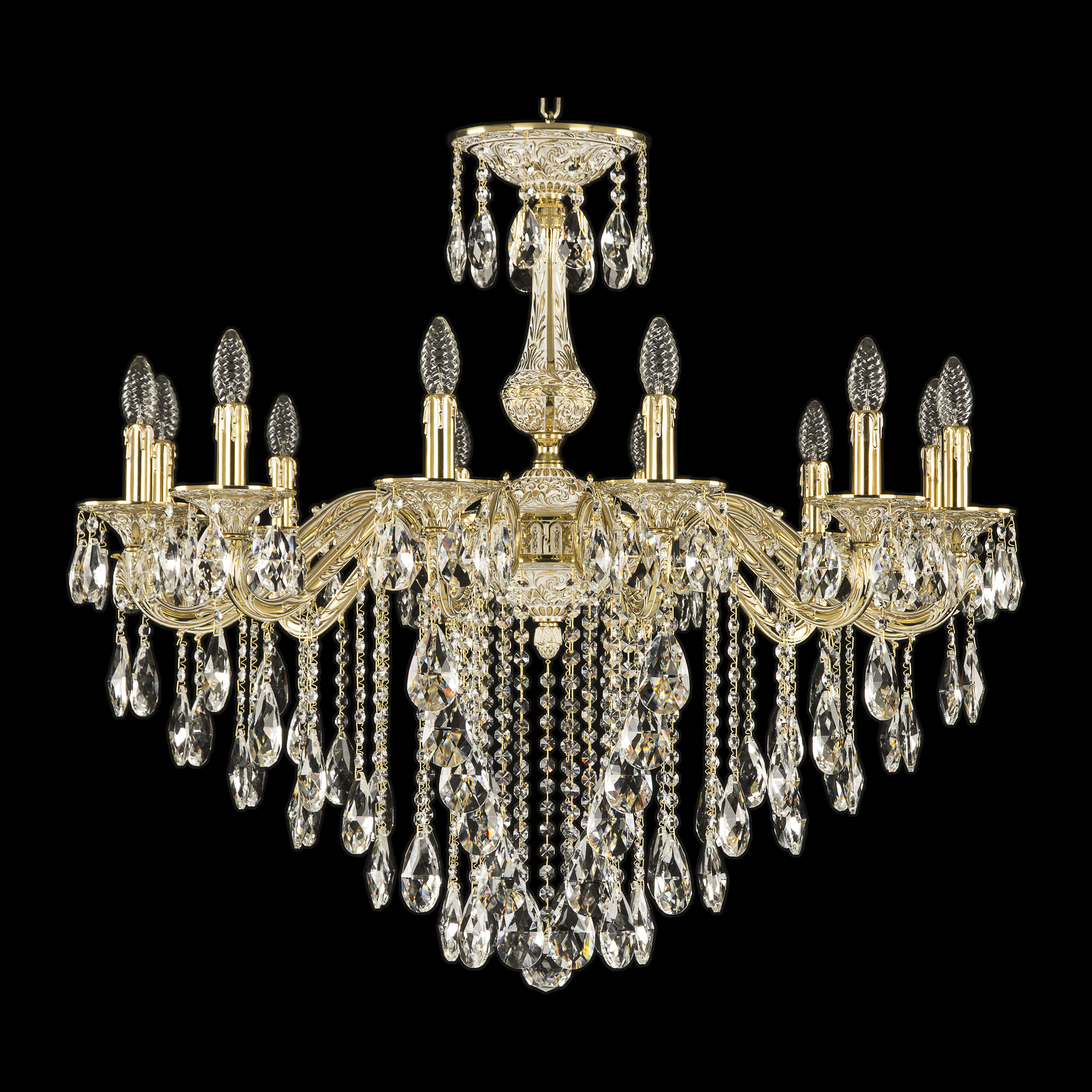 Допускается отличие страны-изготовителя, указанной в характеристиках. Линии производства могут находиться в нескольких государствах. Это не влияет на качество изготовления товара: все заводы данного бренда работают по общим стандартам, а готовые изделия проходят соответствующий контроль.Чехия Коллекция 7102 ЦветЦвет арматуры золото белёное Цвет Золото Материал арматуры Латунь Цвет декора бесцветный РазмерыВысота (мм) 830 Диаметр (мм) 920 Ширина (мм) 920 ЭлектрикаКоличество ламп (шт) 12 Цоколь E14 Мощность лампы (Вт) 40 Дополнительная информацияВес (Кг) 22 Тип подвеса На цепи -