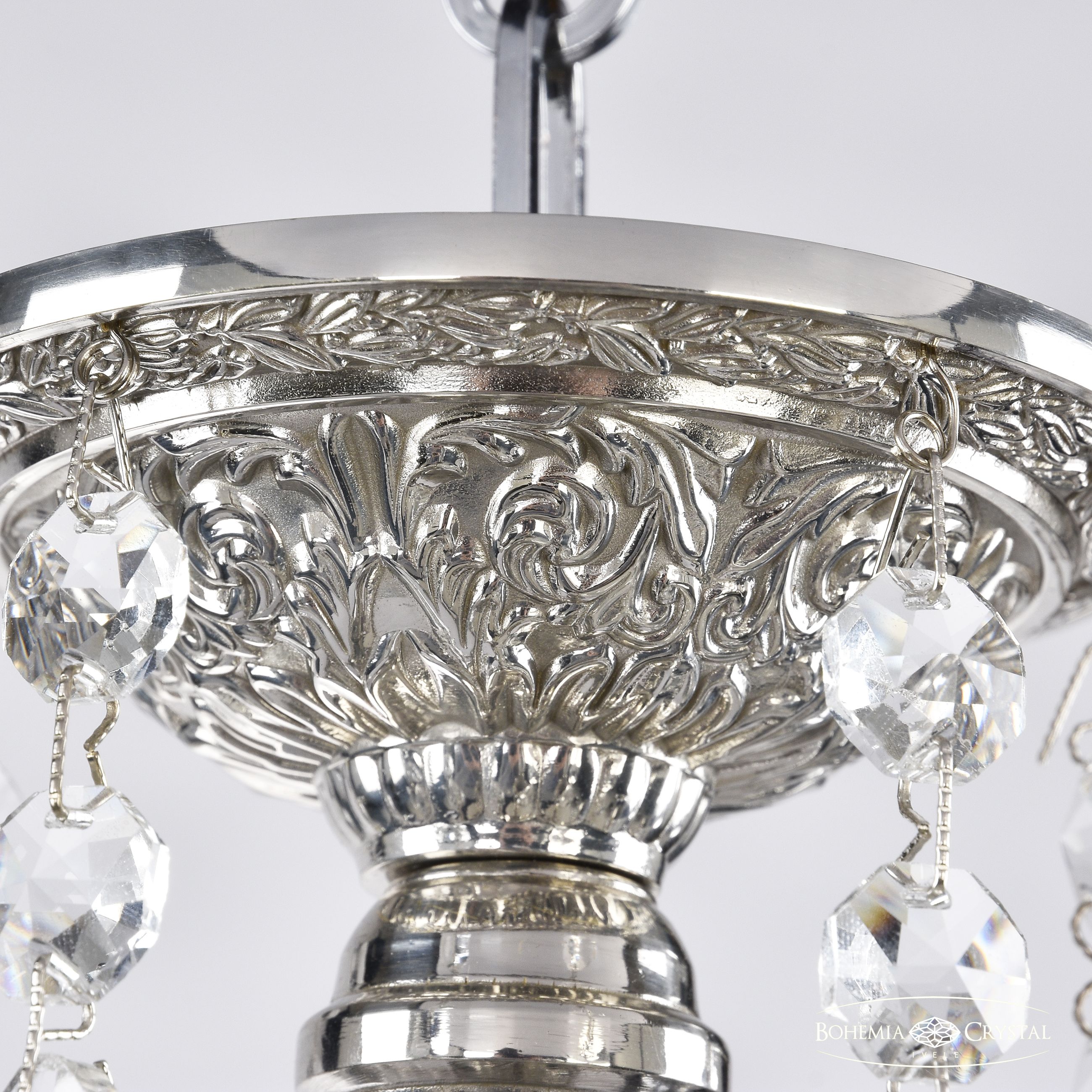 Допускается отличие страны-изготовителя, указанной в характеристиках. Линии производства могут находиться в нескольких государствах. Это не влияет на качество изготовления товара: все заводы данного бренда работают по общим стандартам, а готовые изделия проходят соответствующий контроль.Чехия Коллекция 7102 ЦветЦвет арматуры Никель Цвет Никель Материал арматуры Латунь Цвет декора бесцветный РазмерыВысота (мм) 430 Диаметр (мм) 440 Ширина (мм) 440 ЭлектрикаКоличество ламп (шт) 5 Цоколь E14 Мощность лампы (Вт) 40 Дополнительная информацияВес (Кг) 5 Тип подвеса На цепи -