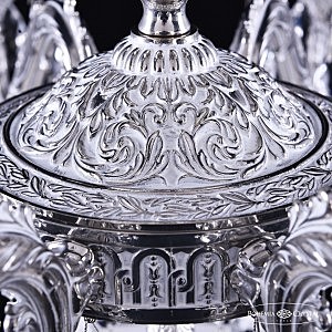 Допускается отличие страны-изготовителя, указанной в характеристиках. Линии производства могут находиться в нескольких государствах. Это не влияет на качество изготовления товара: все заводы данного бренда работают по общим стандартам, а готовые изделия проходят соответствующий контроль.Чехия Коллекция 7102 ЦветЦвет арматуры никель беленый Цвет Никель Материал арматуры Латунь Цвет декора бесцветный РазмерыВысота (мм) 420 Диаметр (мм) 680 Ширина (мм) 680 ЭлектрикаКоличество ламп (шт) 8 Цоколь E14 Мощность лампы (Вт) 40 Дополнительная информацияВес (Кг) 10 Тип подвеса На цепи -