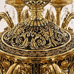 Допускается отличие страны-изготовителя, указанной в характеристиках. Линии производства могут находиться в нескольких государствах. Это не влияет на качество изготовления товара: все заводы данного бренда работают по общим стандартам, а готовые изделия проходят соответствующий контроль.Чехия Коллекция 7102 ЦветЦвет арматуры золото черненое Цвет Золото Материал арматуры Латунь Цвет декора бесцветный РазмерыВысота (мм) 700 Диаметр (мм) 920 Ширина (мм) 920 ЭлектрикаКоличество ламп (шт) 16 Цоколь E14 Мощность лампы (Вт) 40 Дополнительная информацияВес (Кг) 30 Тип подвеса На цепи -