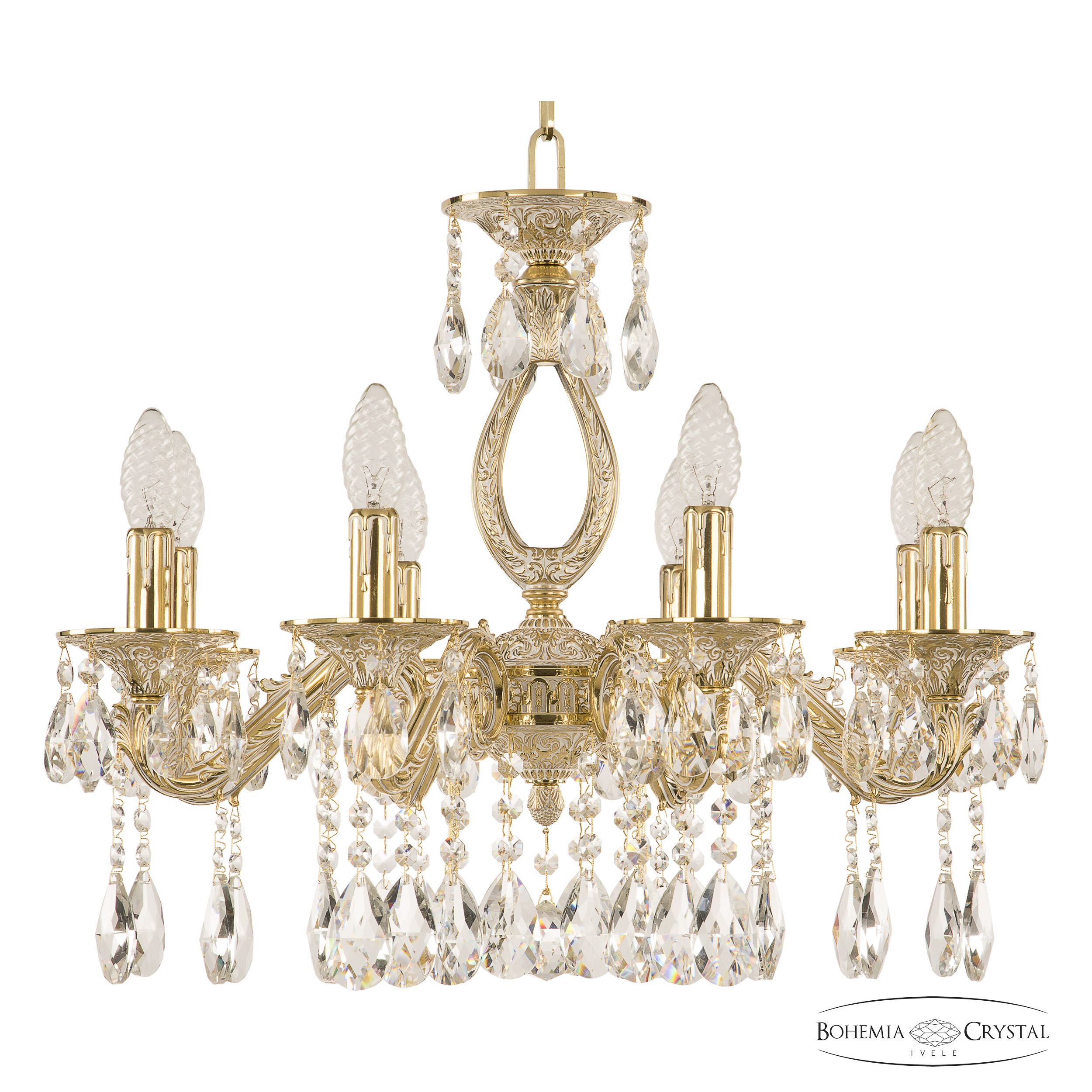 Допускается отличие страны-изготовителя, указанной в характеристиках. Линии производства могут находиться в нескольких государствах. Это не влияет на качество изготовления товара: все заводы данного бренда работают по общим стандартам, а готовые изделия проходят соответствующий контроль.Чехия Коллекция 7102 ЦветЦвет арматуры золото белёное Цвет Золото Материал арматуры Латунь Цвет декора бесцветный РазмерыВысота (мм) 440 Диаметр (мм) 560 Ширина (мм) 560 ЭлектрикаКоличество ламп (шт) 8 Цоколь E14 Мощность лампы (Вт) 40 Дополнительная информацияВес (Кг) 9 Тип подвеса На цепи -