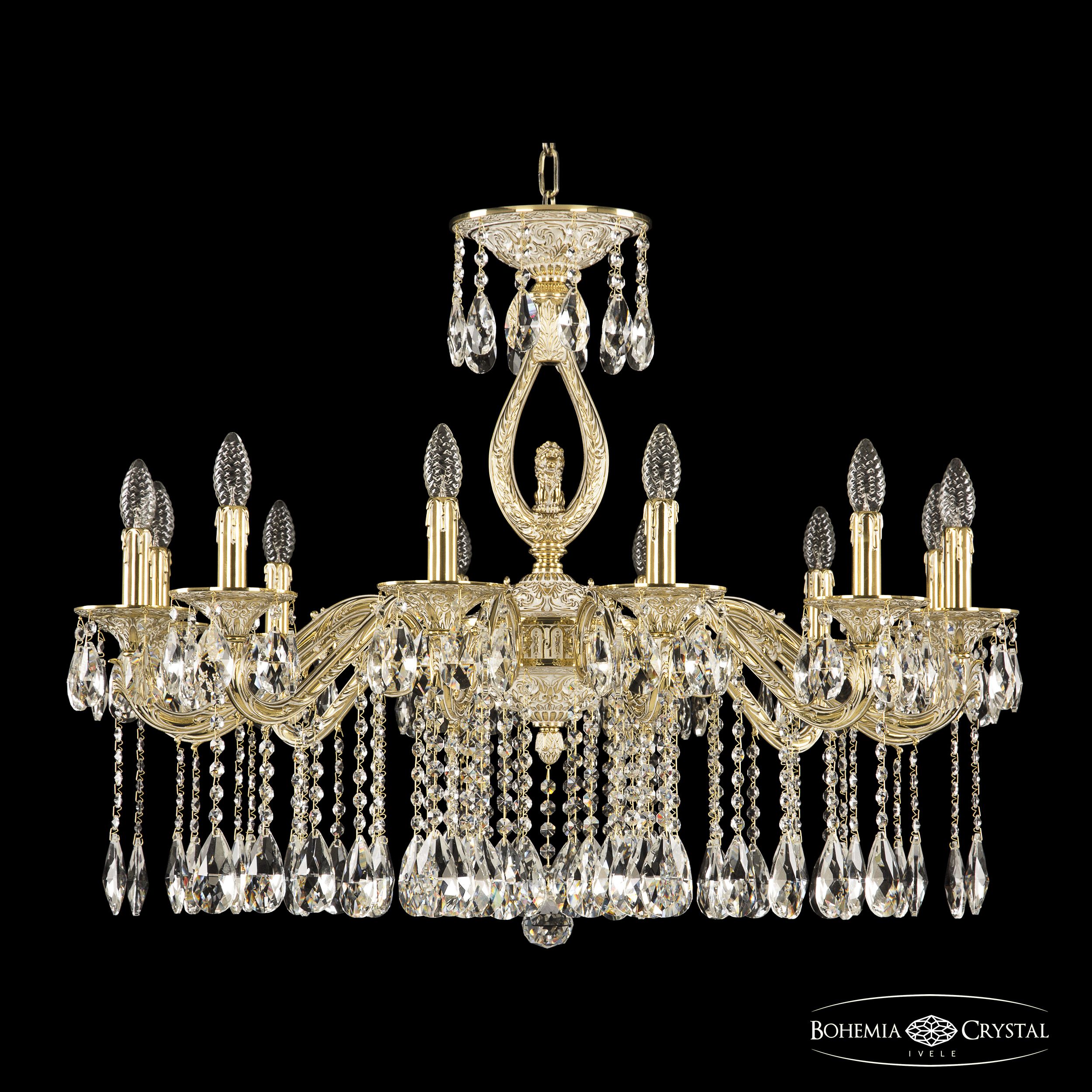 Допускается отличие страны-изготовителя, указанной в характеристиках. Линии производства могут находиться в нескольких государствах. Это не влияет на качество изготовления товара: все заводы данного бренда работают по общим стандартам, а готовые изделия проходят соответствующий контроль.Чехия Коллекция 7102 ЦветЦвет арматуры золото белёное Цвет Золото Материал арматуры Латунь Цвет декора бесцветный РазмерыВысота (мм) 720 Диаметр (мм) 920 Ширина (мм) 920 ЭлектрикаКоличество ламп (шт) 12 Цоколь E14 Мощность лампы (Вт) 40 Дополнительная информацияВес (Кг) 25 Тип подвеса На цепи -