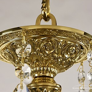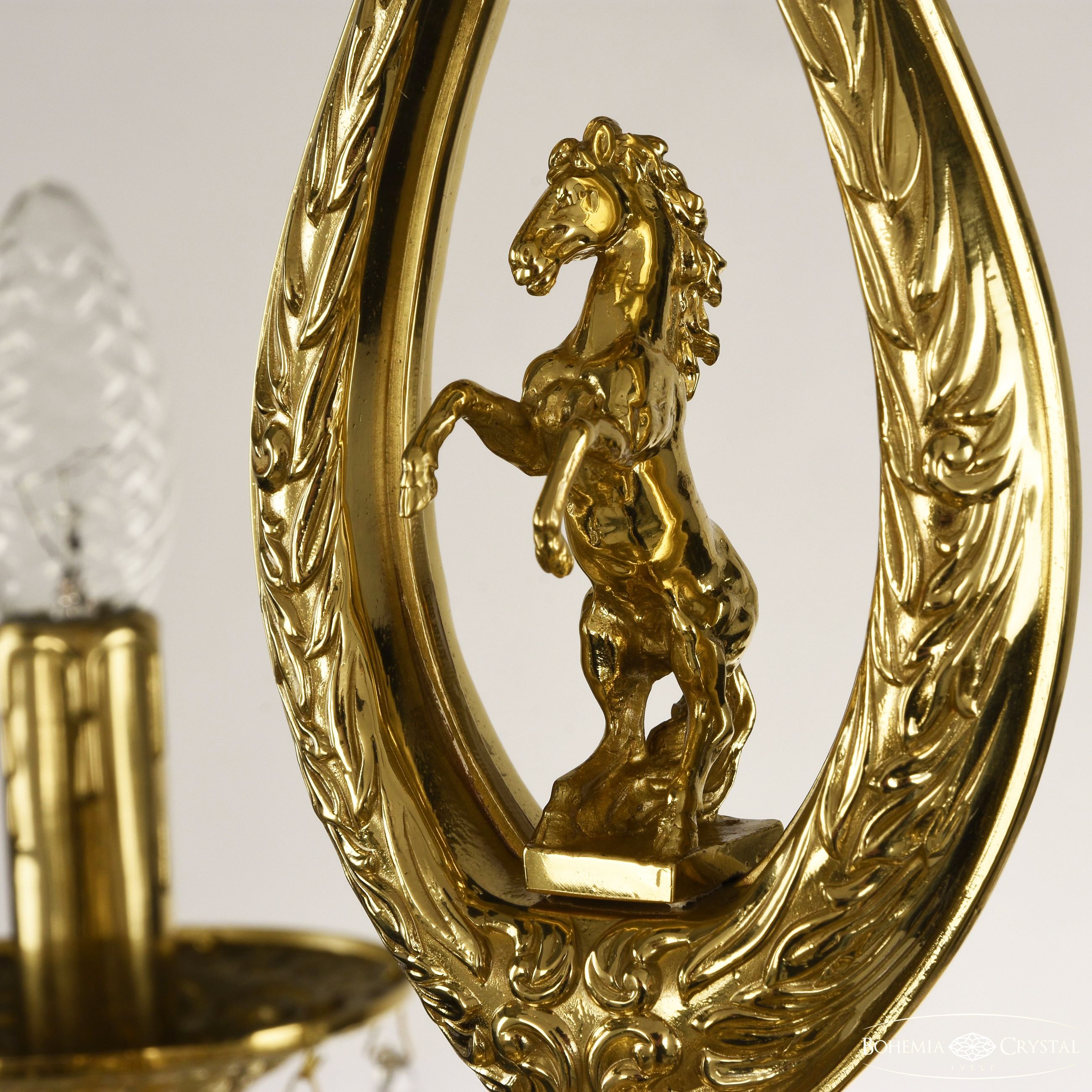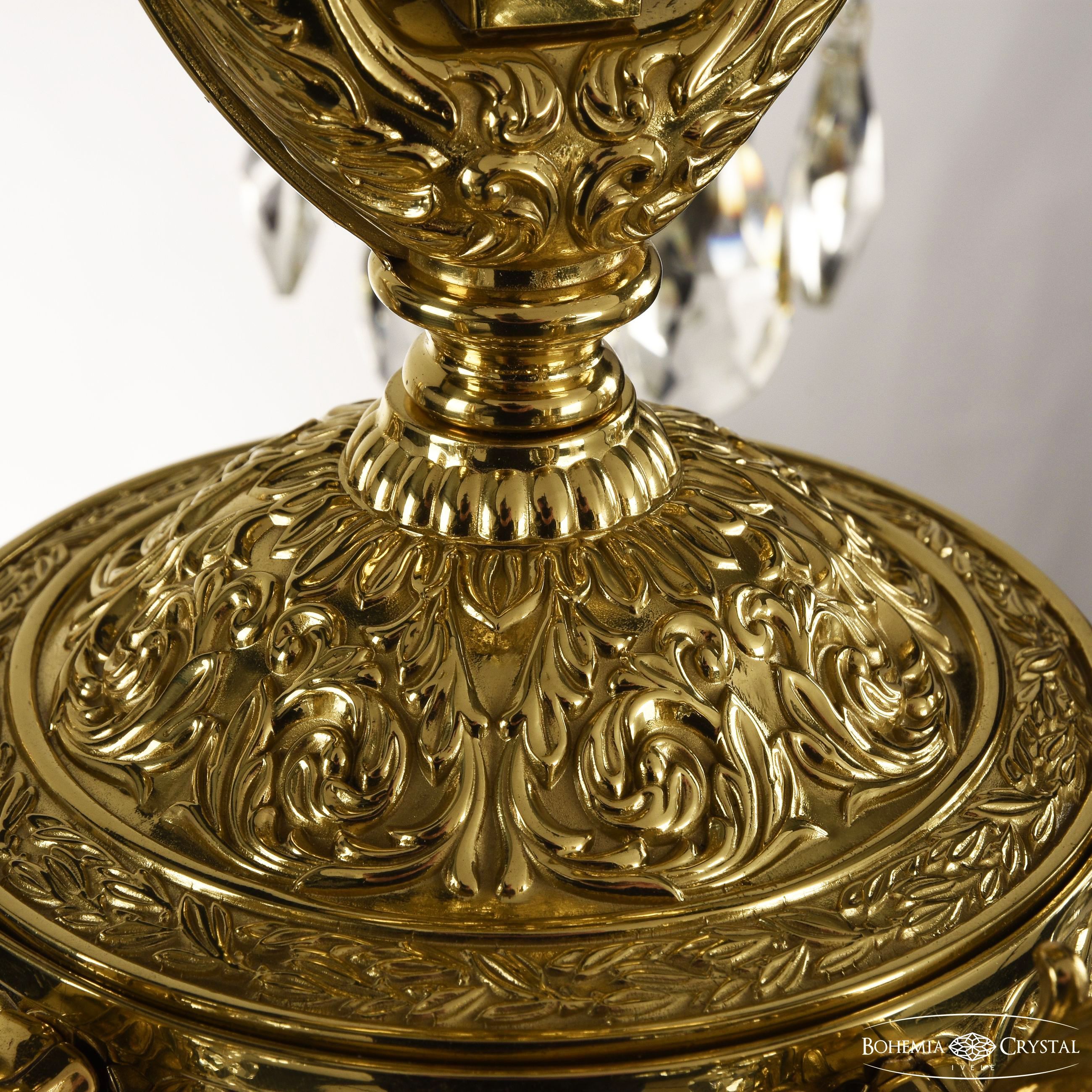 Допускается отличие страны-изготовителя, указанной в характеристиках. Линии производства могут находиться в нескольких государствах. Это не влияет на качество изготовления товара: все заводы данного бренда работают по общим стандартам, а готовые изделия проходят соответствующий контроль.Чехия Коллекция 7102 ЦветЦвет арматуры Золото Цвет Золото Материал арматуры Латунь Цвет декора бесцветный РазмерыВысота (мм) 430 Диаметр (мм) 560 Ширина (мм) 560 ЭлектрикаКоличество ламп (шт) 5 Цоколь E14 Мощность лампы (Вт) 40 Дополнительная информацияВес (Кг) 6 Тип подвеса На цепи -