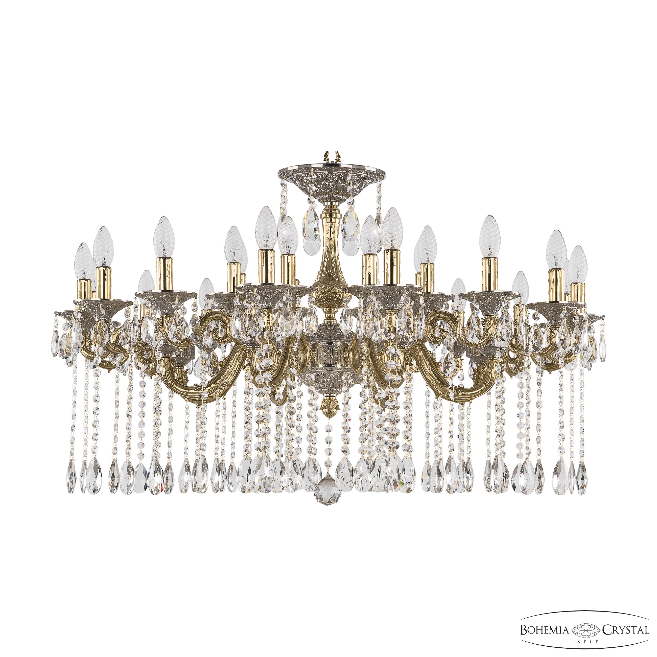 Допускается отличие страны-изготовителя, указанной в характеристиках. Линии производства могут находиться в нескольких государствах. Это не влияет на качество изготовления товара: все заводы данного бренда работают по общим стандартам, а готовые изделия проходят соответствующий контроль.Чехия Коллекция 7105 ЦветЦвет арматуры Золото Цвет Золото Материал арматуры Латунь Цвет декора бесцветный РазмерыВысота (мм) 600 Диаметр (мм) 1020 Ширина (мм) 1020 ЭлектрикаКоличество ламп (шт) 24 Цоколь E14 Мощность лампы (Вт) 40 Дополнительная информацияТип подвеса На цепи -