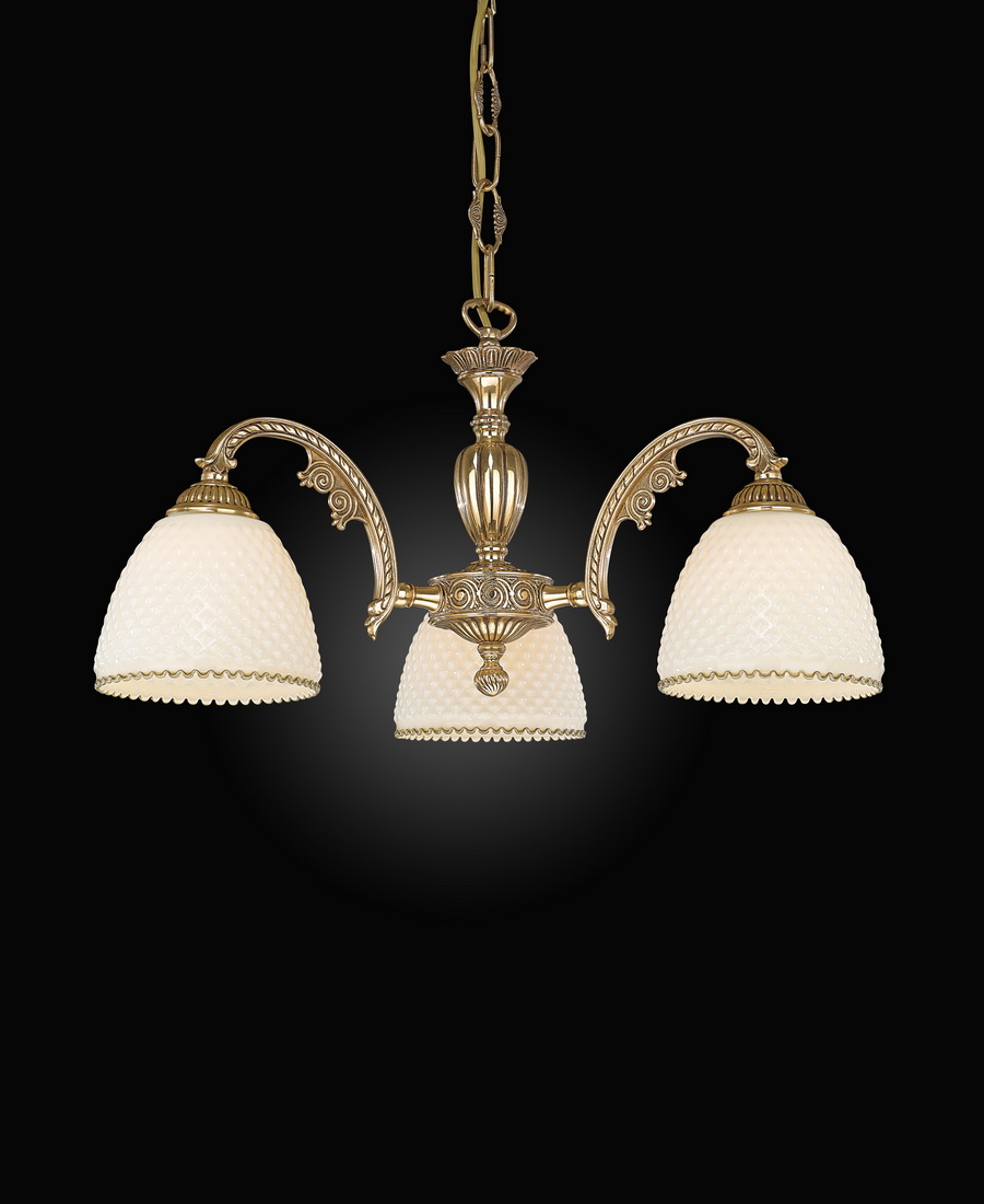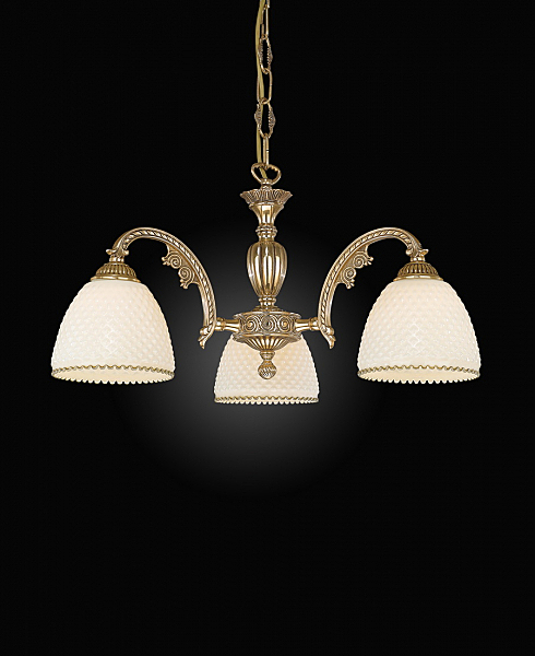 Корпус люстры изготовлен из высококачественной латуни и имеет покрытие ORO FRANCESE.