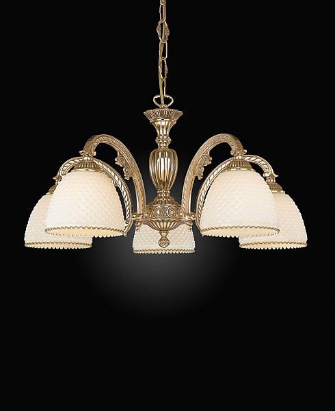 Корпус люстры изготовлен из высококачественной латуни и имеет покрытие ORO FRANCESE.