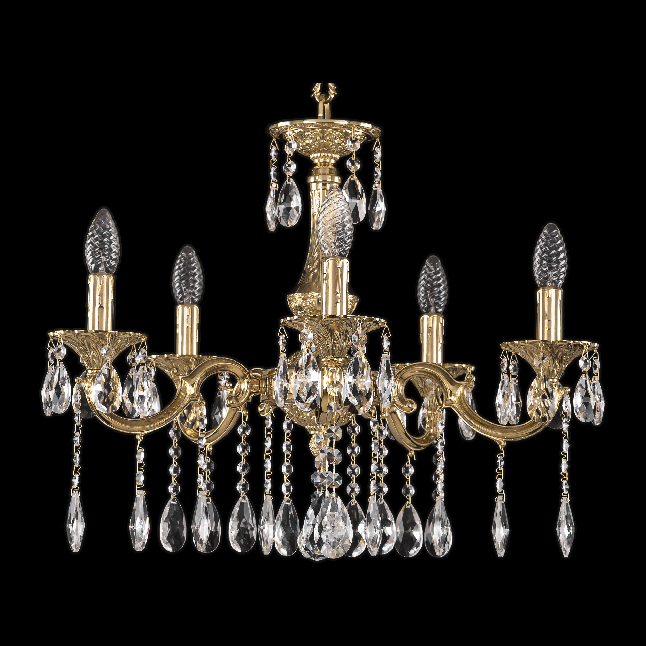 Допускается отличие страны-изготовителя, указанной в характеристиках. Линии производства могут находиться в нескольких государствах. Это не влияет на качество изготовления товара: все заводы данного бренда работают по общим стандартам, а готовые изделия проходят соответствующий контроль.Чехия Коллекция 7201 ЦветЦвет арматуры Золото Цвет Золото Материал арматуры Латунь Цвет декора бесцветный РазмерыВысота (мм) 450 Диаметр (мм) 580 Ширина (мм) 580 ЭлектрикаКоличество ламп (шт) 5 Цоколь E14 Мощность лампы (Вт) 40 Дополнительная информацияВес (Кг) 6 Тип подвеса На цепи -