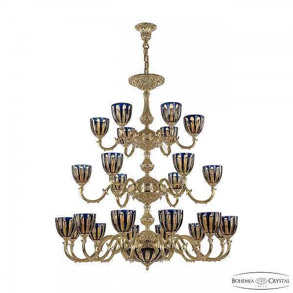 Допускается отличие страны-изготовителя, указанной в характеристиках. Линии производства могут находиться в нескольких государствах. Это не влияет на качество изготовления товара: все заводы данного бренда работают по общим стандартам, а готовые изделия проходят соответствующий контроль.Чехия Коллекция 7201 ЦветЦвет арматуры Золото Цвет Золото Материал арматуры Латунь Цвет декора синий РазмерыВысота (мм) 1280 Диаметр (мм) 1160 Ширина (мм) 1160 ЭлектрикаКоличество ламп (шт) 24 Цоколь E14 Мощность лампы (Вт) 40 Дополнительная информацияВес (Кг) 36 Тип подвеса На цепи -