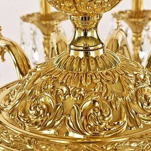 Допускается отличие страны-изготовителя, указанной в характеристиках. Линии производства могут находиться в нескольких государствах. Это не влияет на качество изготовления товара: все заводы данного бренда работают по общим стандартам, а готовые изделия проходят соответствующий контроль.Чехия Коллекция 7202 ЦветЦвет арматуры Золото Цвет Золото Материал арматуры Латунь Цвет декора бесцветный РазмерыВысота (мм) 880 Диаметр (мм) 1090 Ширина (мм) 1090 ЭлектрикаКоличество ламп (шт) 16 Цоколь E14 Мощность лампы (Вт) 40 Дополнительная информацияВес (Кг) 33 Тип подвеса На цепи -