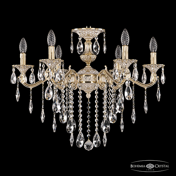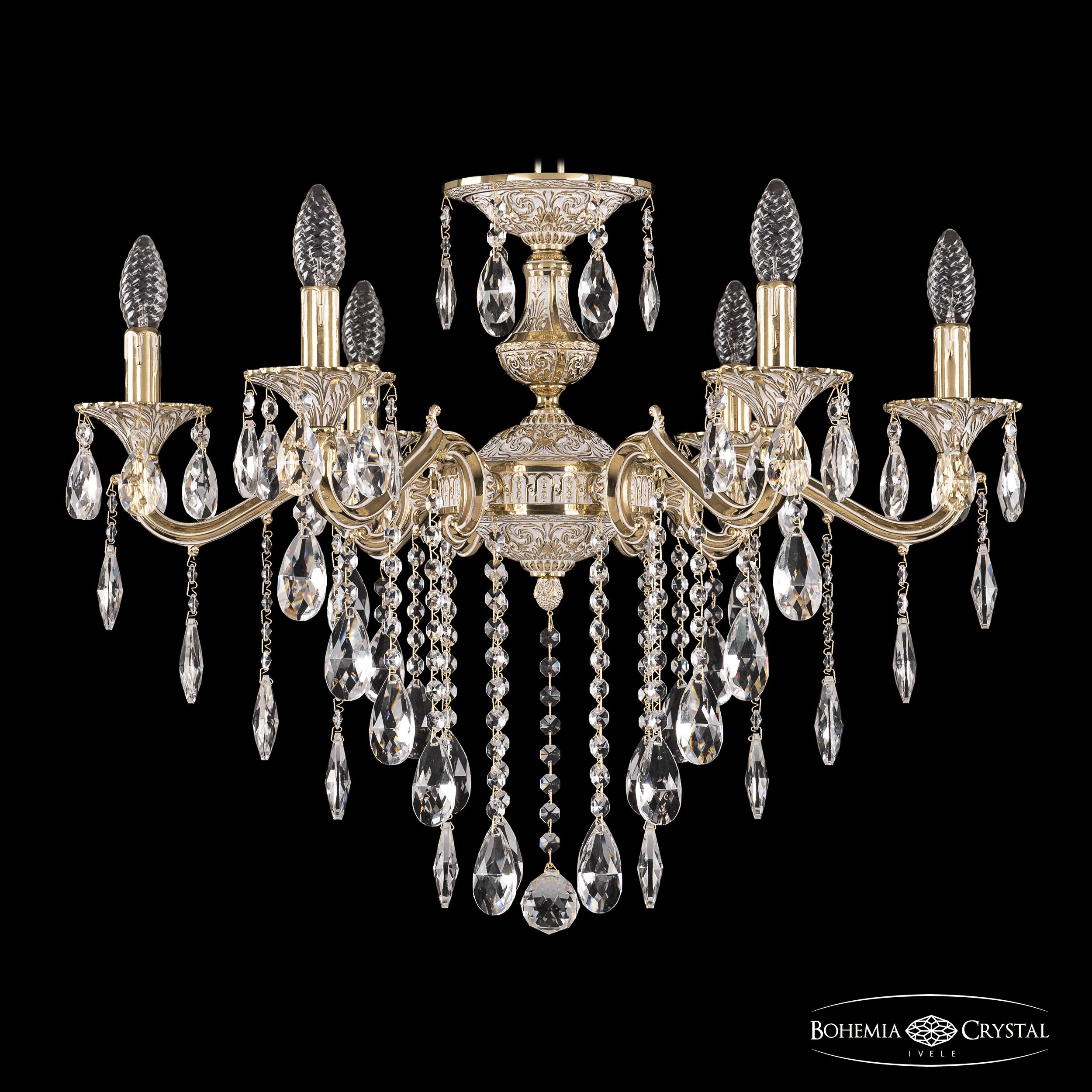 Допускается отличие страны-изготовителя, указанной в характеристиках. Линии производства могут находиться в нескольких государствах. Это не влияет на качество изготовления товара: все заводы данного бренда работают по общим стандартам, а готовые изделия проходят соответствующий контроль.Чехия Коллекция 7202 ЦветЦвет арматуры золото белёное Цвет Золото Материал арматуры Латунь Цвет декора бесцветный РазмерыВысота (мм) 530 Диаметр (мм) 680 Ширина (мм) 680 ЭлектрикаКоличество ламп (шт) 6 Цоколь E14 Мощность лампы (Вт) 40 Дополнительная информацияВес (Кг) 7 Тип подвеса На цепи -