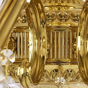 Допускается отличие страны-изготовителя, указанной в характеристиках. Линии производства могут находиться в нескольких государствах. Это не влияет на качество изготовления товара: все заводы данного бренда работают по общим стандартам, а готовые изделия проходят соответствующий контроль.Чехия Коллекция 7502 ЦветЦвет арматуры Золото Цвет Золото Материал арматуры Латунь Цвет декора бесцветный РазмерыВысота (мм) 1040 Диаметр (мм) 1090 Ширина (мм) 1090 ЭлектрикаКоличество ламп (шт) 16 Цоколь E14 Мощность лампы (Вт) 40 Дополнительная информацияВес (Кг) 39 Тип подвеса На цепи -