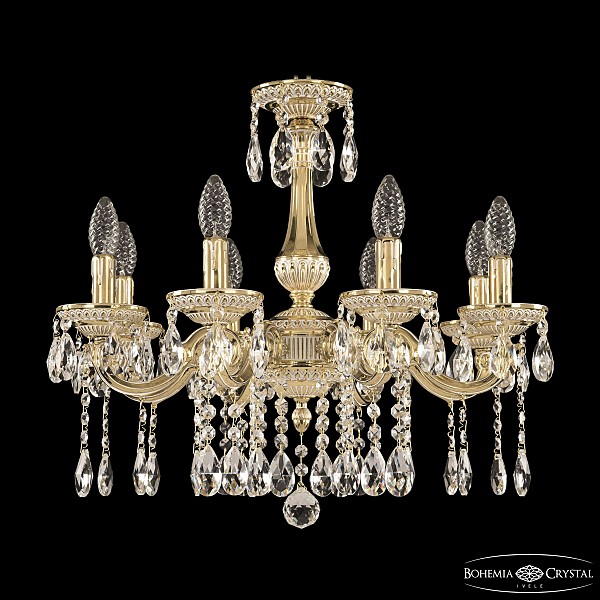 Допускается отличие страны-изготовителя, указанной в характеристиках. Линии производства могут находиться в нескольких государствах. Это не влияет на качество изготовления товара: все заводы данного бренда работают по общим стандартам, а готовые изделия проходят соответствующий контроль.Чехия Коллекция 7510 ЦветЦвет арматуры золото белёное Цвет Золото Материал арматуры Латунь Цвет декора бесцветный РазмерыВысота (мм) 560 Диаметр (мм) 670 Ширина (мм) 670 ЭлектрикаКоличество ламп (шт) 8 Цоколь E14 Мощность лампы (Вт) 40 Дополнительная информацияВес (Кг) 11 Тип подвеса На цепи -