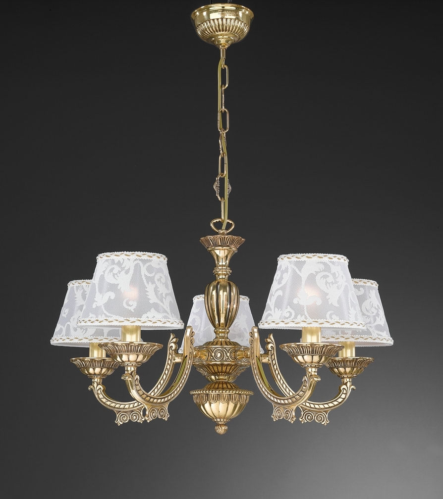 Корпус люстры изготовлен из высококачественной латуни и имеет покрытие ORO FRANCESE.