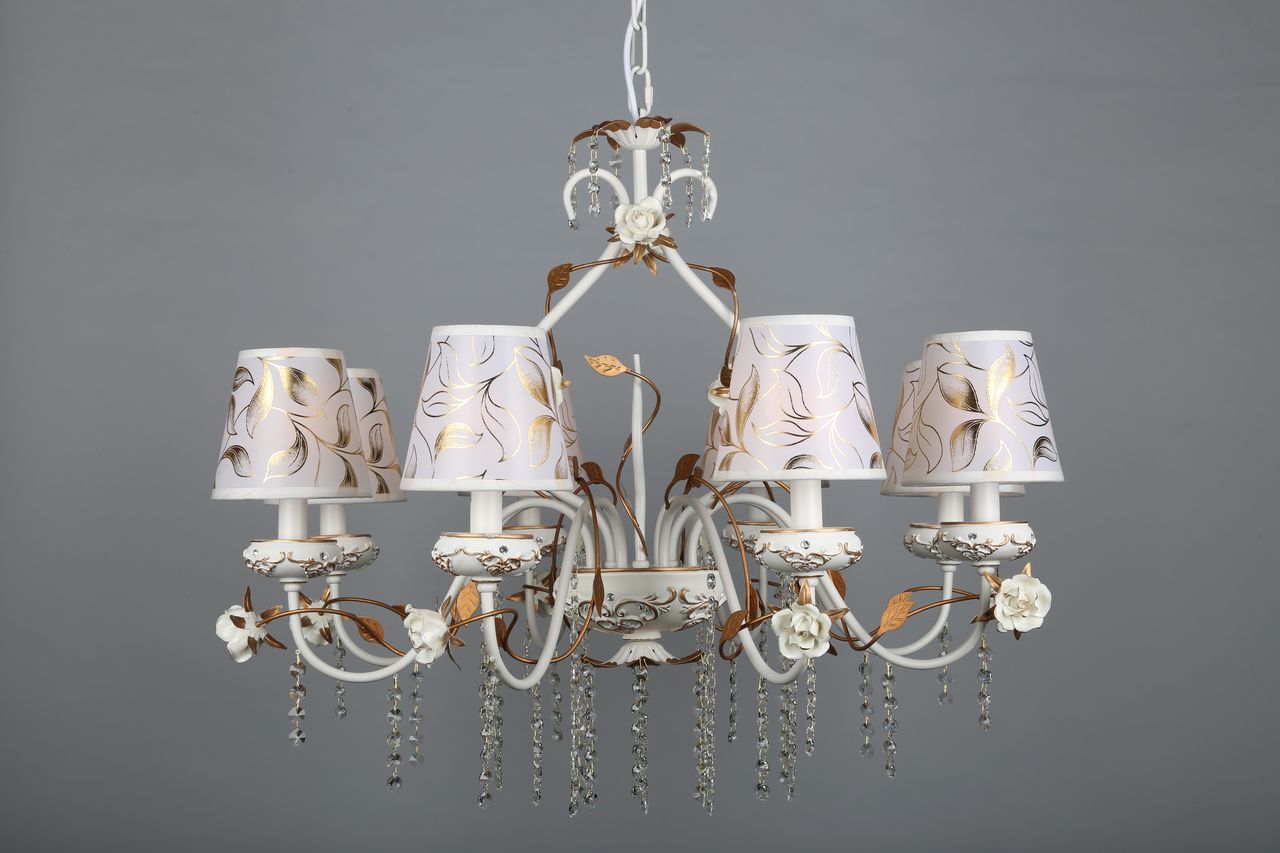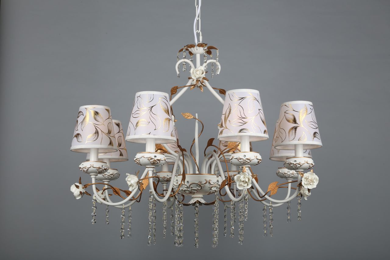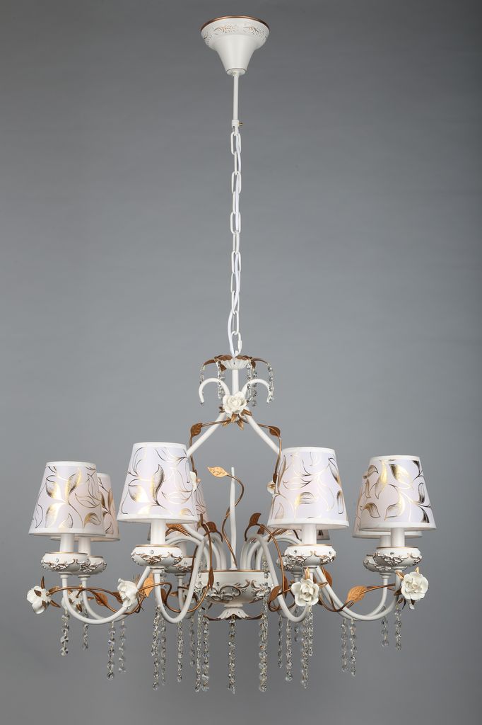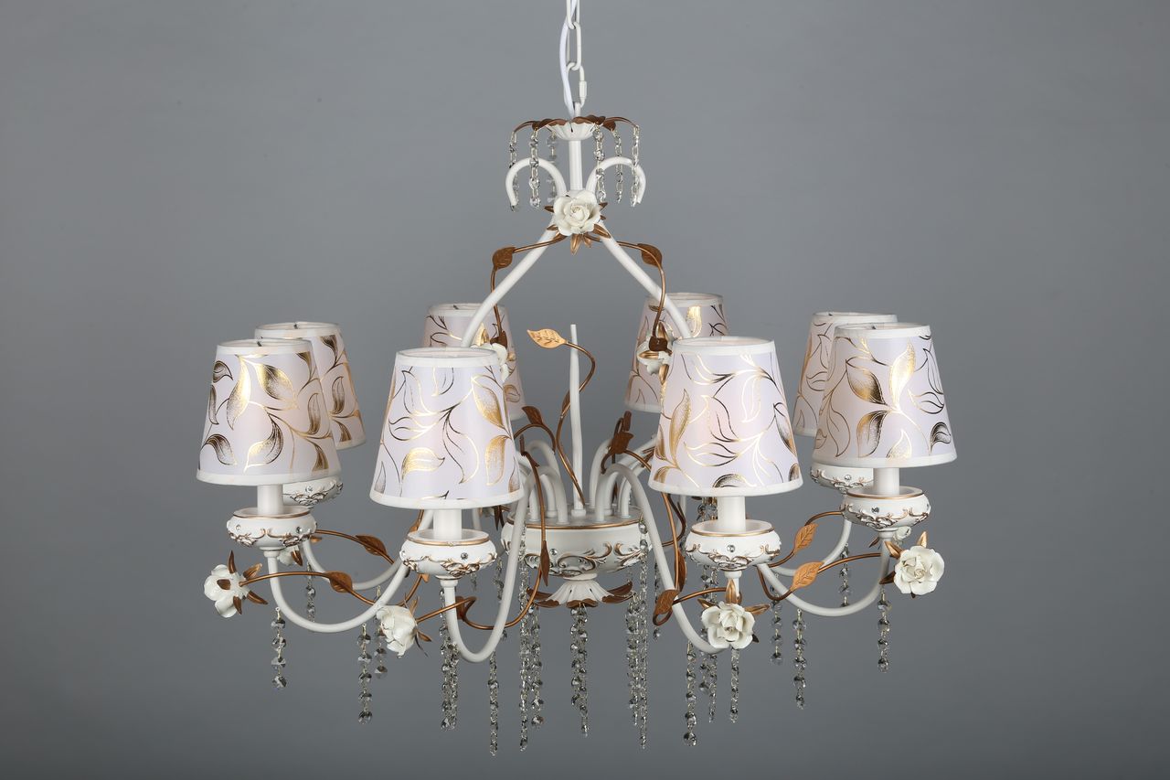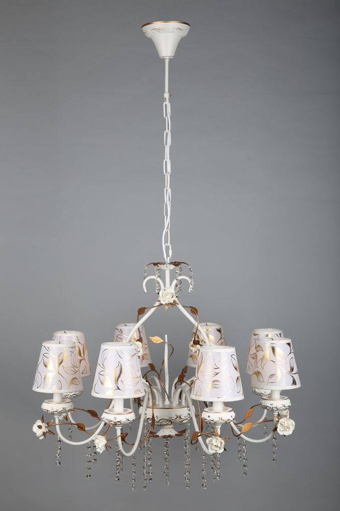 Допускается отличие страны-изготовителя, указанной в характеристиках. Линии производства могут находиться в нескольких государствах. Это не влияет на качество изготовления товара: все заводы данного бренда работают по общим стандартам, а готовые изделия проходят соответствующий контроль.Китай Коллекция Lucca ЦветЦвет арматуры Золото, Белый Цвет Белый Материал арматуры Металл, Полимер Цвет декора белый Цвет плафона Белый Материал декора Керамика Материал плафона Пластик, Ткань РазмерыВысота (мм) 1300 Диаметр (мм) 800 Высота минимальная (мм) 900 Ширина (мм) 800 ЭлектрикаКоличество ламп (шт) 8 Цоколь E14 Мощность лампы (Вт) 40W Напряжение (В) 220 Дополнительная информацияВес (Кг) 7 Тип подвеса На цепи -