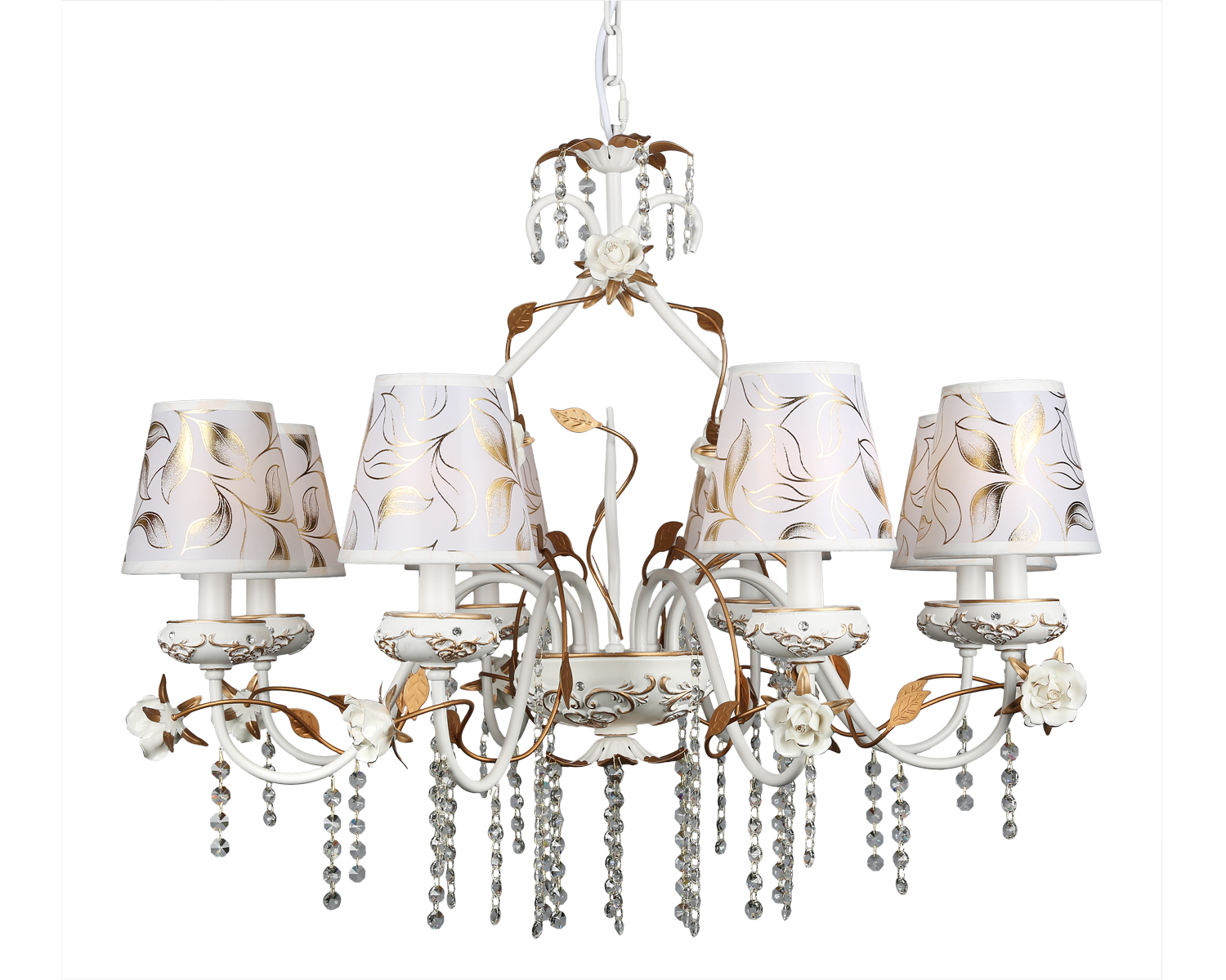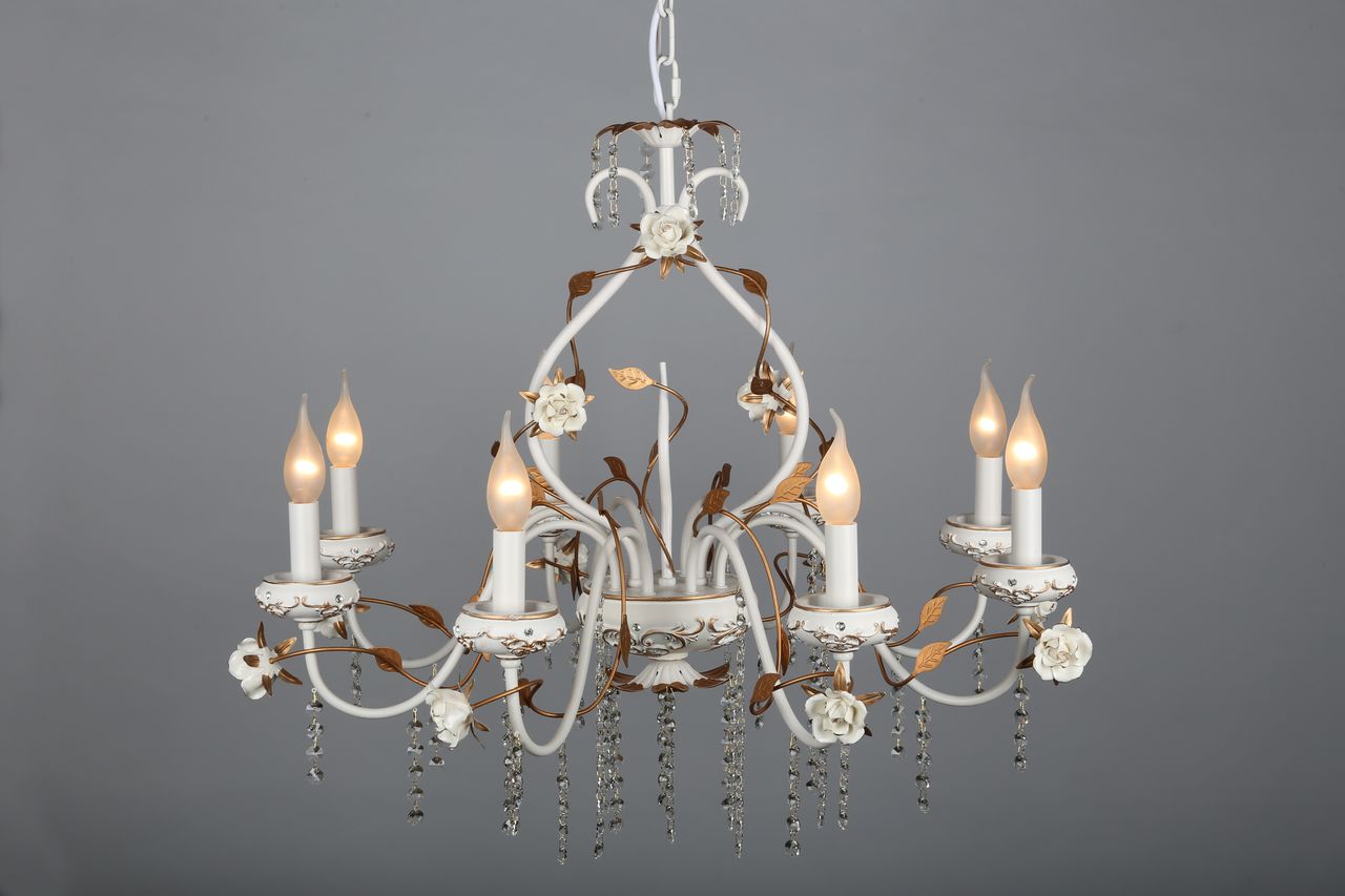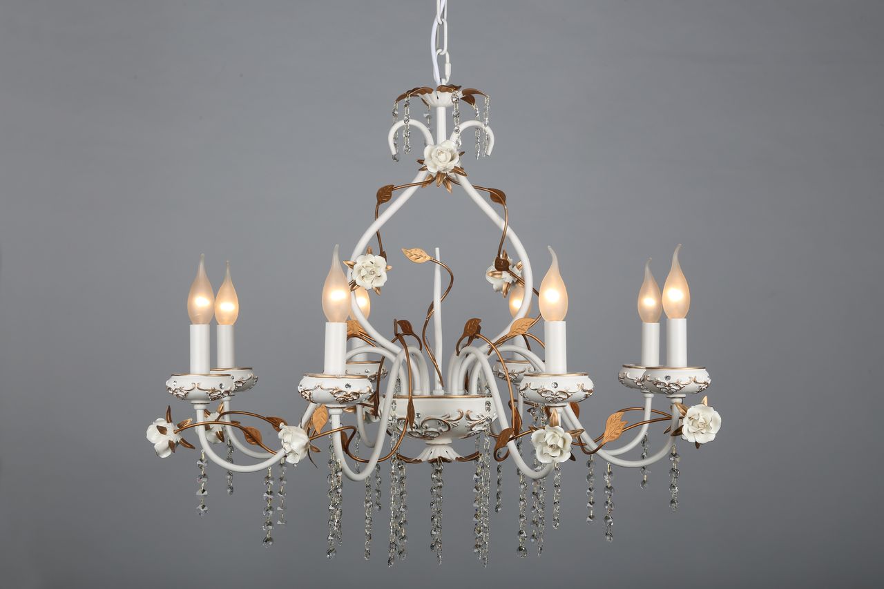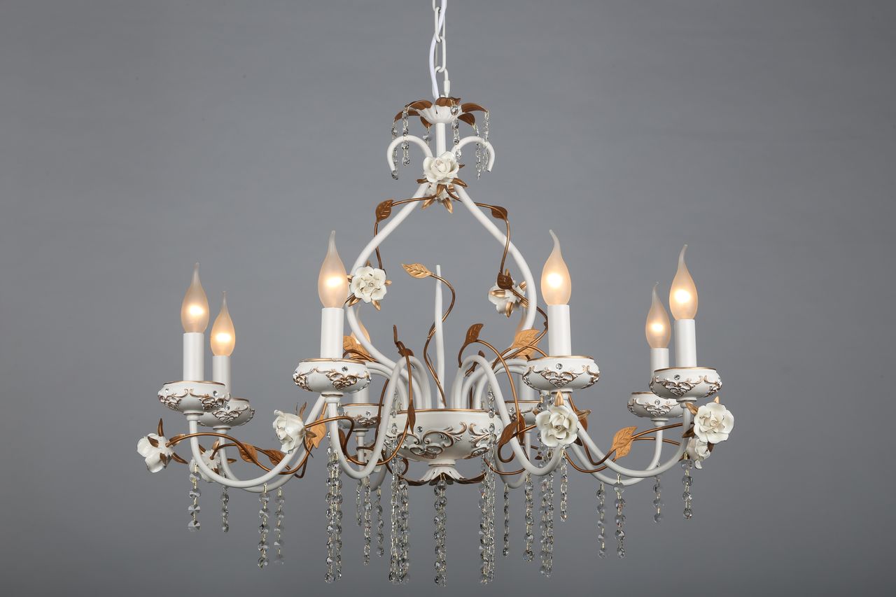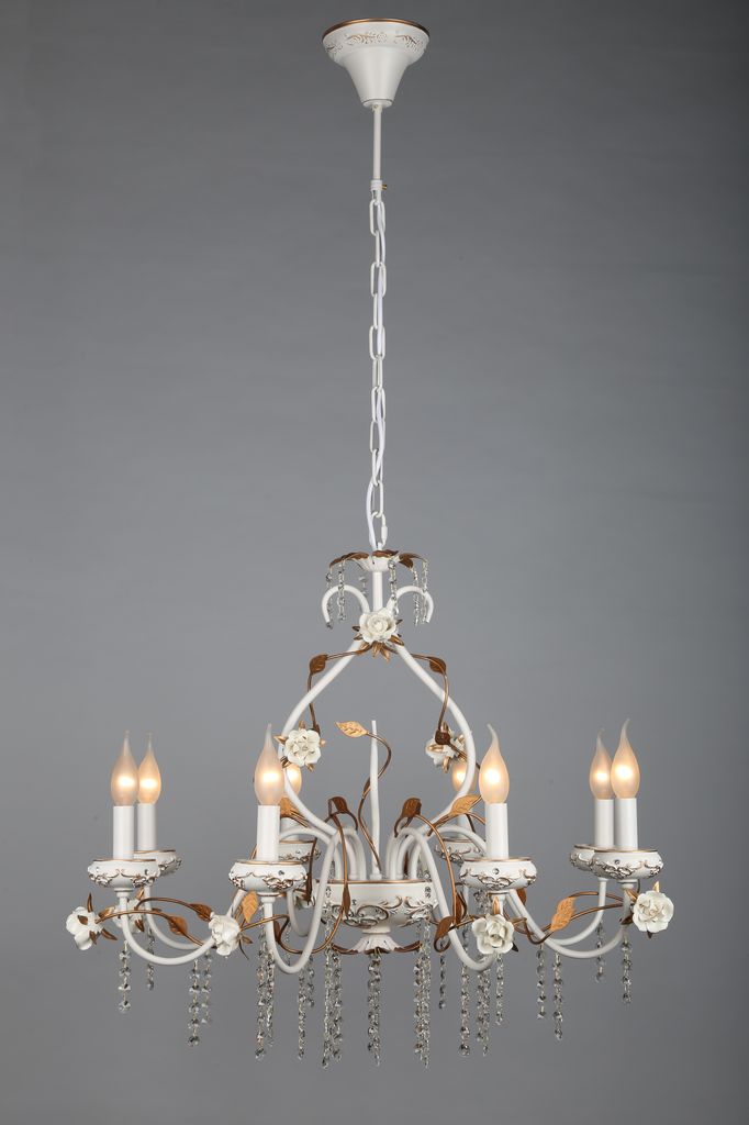 Допускается отличие страны-изготовителя, указанной в характеристиках. Линии производства могут находиться в нескольких государствах. Это не влияет на качество изготовления товара: все заводы данного бренда работают по общим стандартам, а готовые изделия проходят соответствующий контроль.Китай Коллекция Lucca ЦветЦвет арматуры Золото, Белый Цвет Белый Материал арматуры Металл, Полимер Цвет декора белый Цвет плафона Белый Материал декора Керамика Материал плафона Пластик, Ткань РазмерыВысота (мм) 1300 Диаметр (мм) 800 Высота минимальная (мм) 900 Ширина (мм) 800 ЭлектрикаКоличество ламп (шт) 8 Цоколь E14 Мощность лампы (Вт) 40W Напряжение (В) 220 Дополнительная информацияВес (Кг) 7 Тип подвеса На цепи -