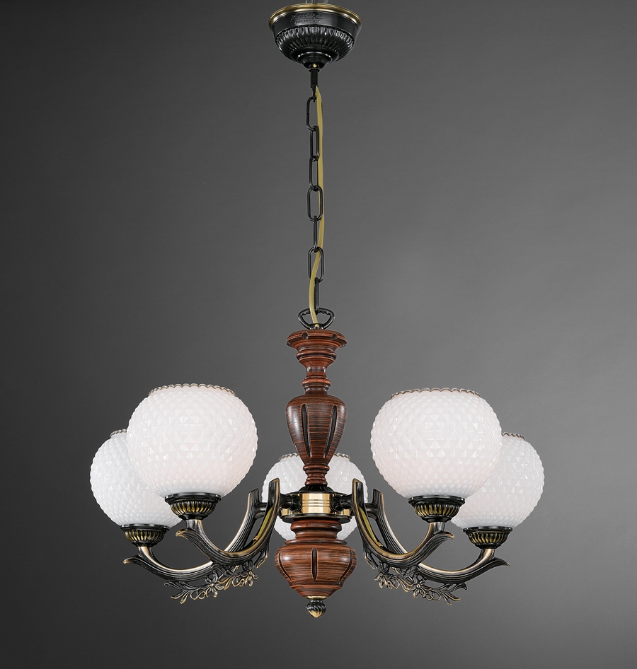 Допускается отличие страны-изготовителя, указанной в характеристиках. Линии производства могут находиться в нескольких государствах. Это не влияет на качество изготовления товара: все заводы данного бренда работают по общим стандартам, а готовые изделия проходят соответствующий контроль.Италия Коллекция 8660 ЦветЦвет арматуры Коричневый, бронза темная Цвет Дерево Материал арматуры Латунь, Дерево Цвет плафона Белый Материал декора Дерево Материал плафона Стекло РазмерыВысота (мм) 340 Диаметр (мм) 600 Высота минимальная (мм) 440 Ширина (мм) 600 ЭлектрикаКоличество ламп (шт) 5 Цоколь E27 Тип лампы Накаливания, Энергосберегающая (КЛЛ) Лампочки в комплекте Нет в комплекте Возможность подключение диммера Есть Мощность лампы (Вт) 60 Общая мощность (Вт) 300 Напряжение (В) 220 Площадь освещения 15 Дополнительная информацияСтепень защиты (IP) IP20 Тип подвеса На цепи -