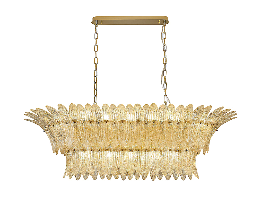 Допускается отличие страны-изготовителя, указанной в характеристиках. Линии производства могут находиться в нескольких государствах. Это не влияет на качество изготовления товара: все заводы данного бренда работают по общим стандартам, а готовые изделия проходят соответствующий контроль.США Коллекция 8800 ЦветЦвет арматуры Золото Цвет Золото Материал арматуры Железо крашеное Цвет декора Прозрачный со светло-желтым напылением Материал декора Стекло РазмерыВысота (мм) 2370 Длина (мм) 1200 Высота минимальная (мм) 370 Ширина (мм) 650 ЭлектрикаКоличество ламп (шт) 19 Цоколь E14 Мощность лампы (Вт) 60 Дополнительная информацияТип подвеса На цепи -