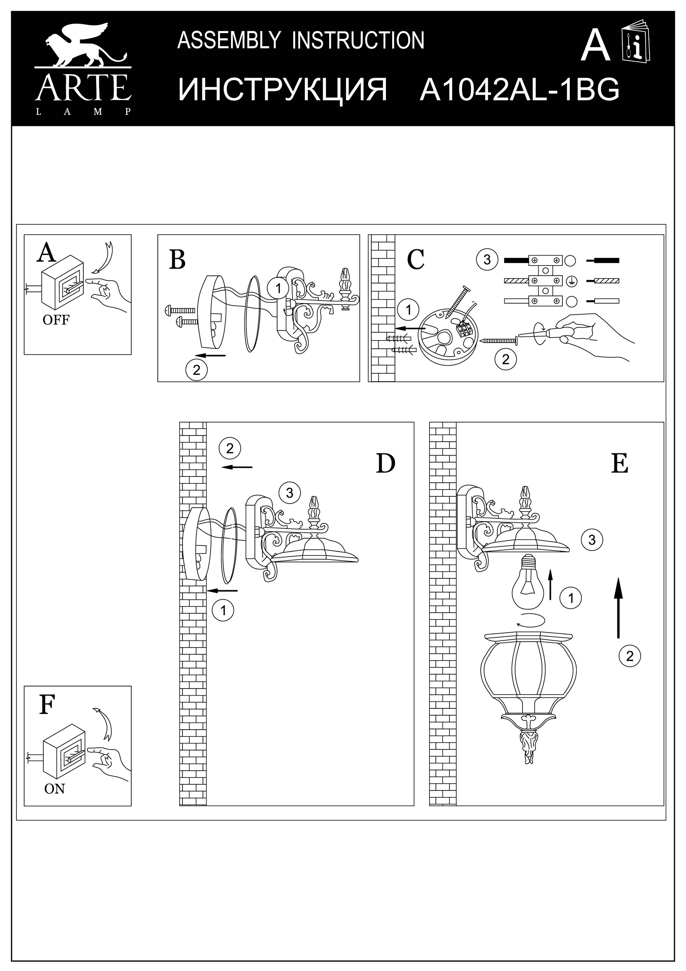 Производитель Arte Lamp Артикул A1042AL-1BG Страна