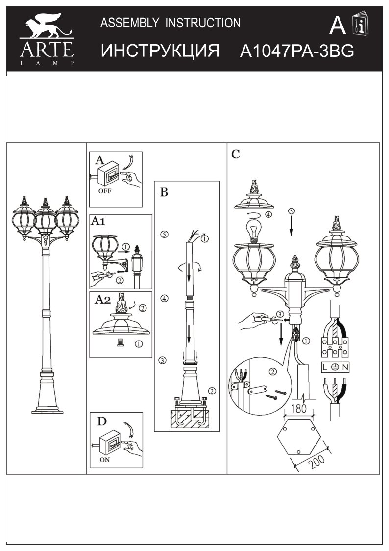 Производитель Arte Lamp Артикул A1047PA-3BG Страна