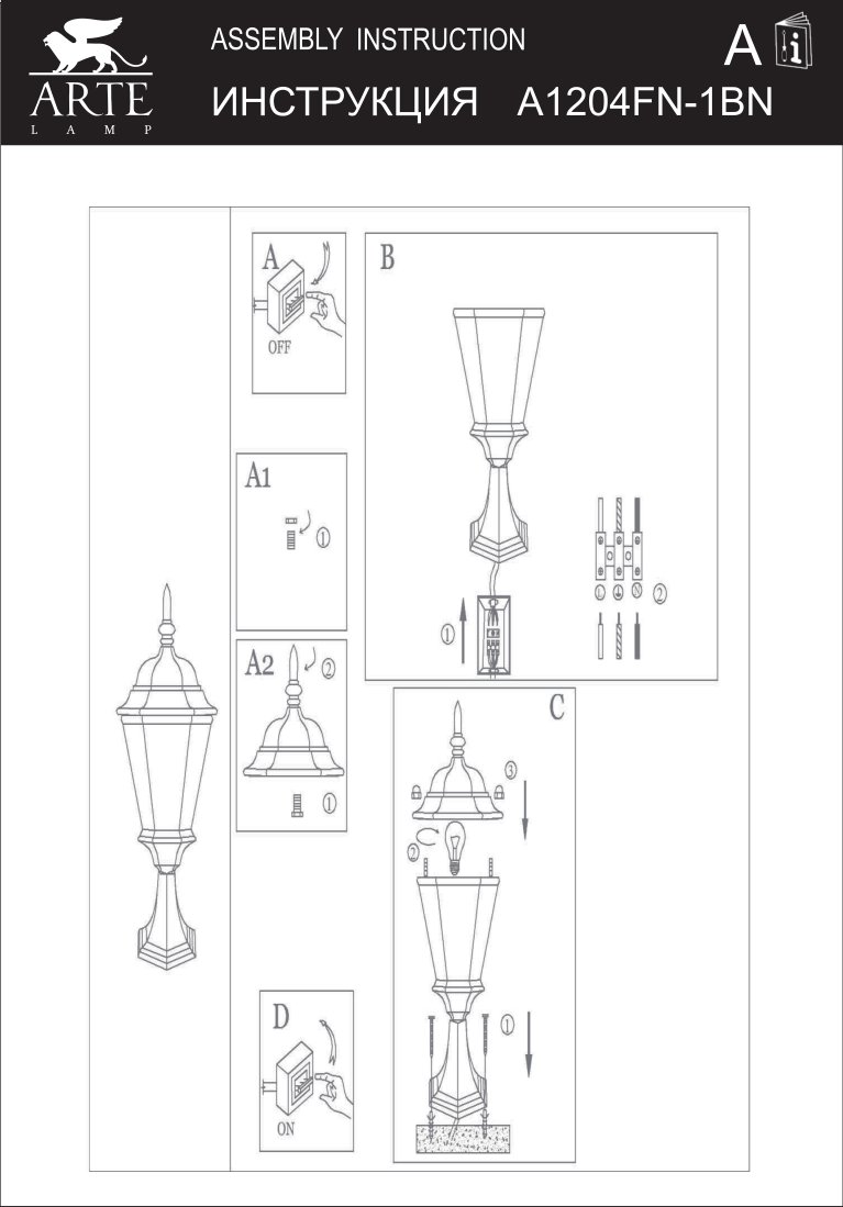 Производитель Arte Lamp Артикул A1204FN-1BN Страна