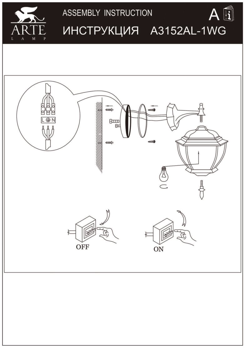 Производитель Arte Lamp Артикул A3152AL-1WG Страна