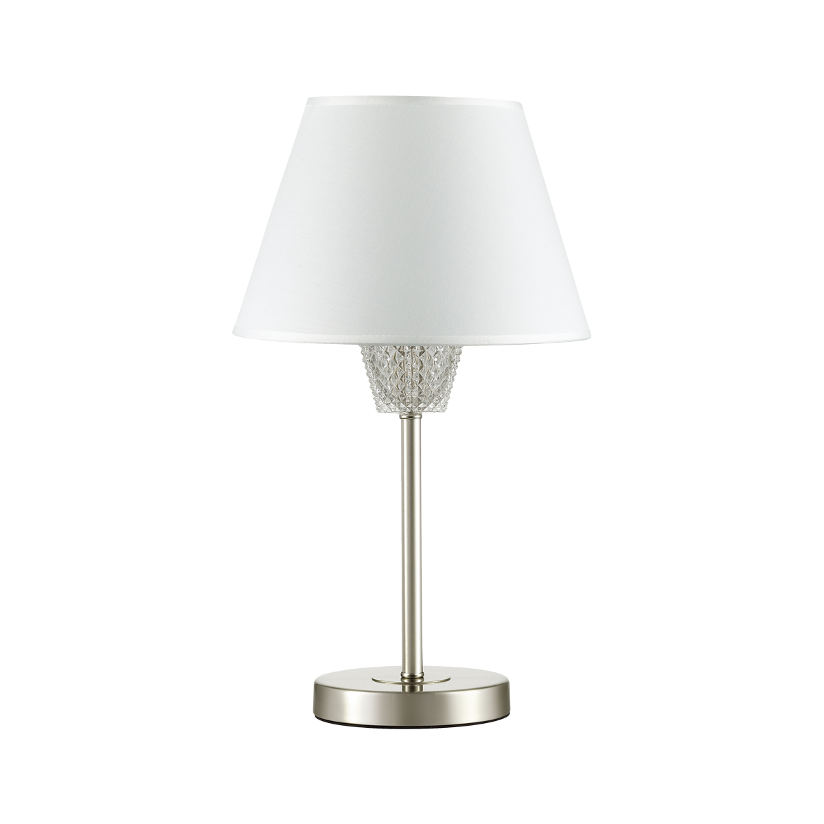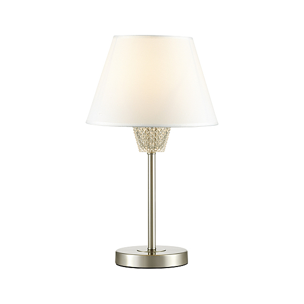Нежная Abigail украсит собой любой классический или неоклассический интерьер. Лаконичность в ней гармонирует с нестандартным изгибом рожков. При включении свет игриво отражается во множестве граней стильного стеклянного декора. Края текстильных абажуров обработаны лентой и легко чистятся от пыли. Основание цвета никель.