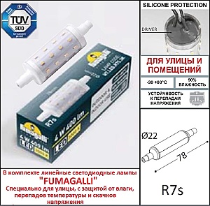 C линейной (прожекторной) светодиодной лампой FUMAGALLI L-78 мм, яркостью 400Lm.