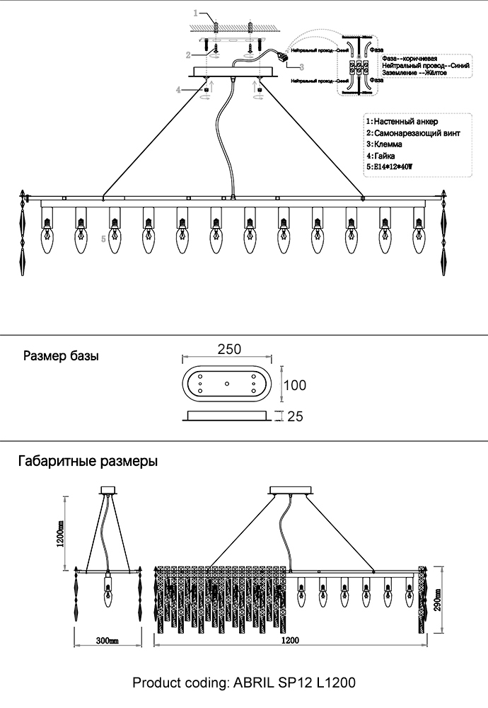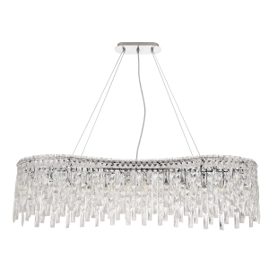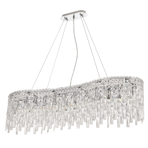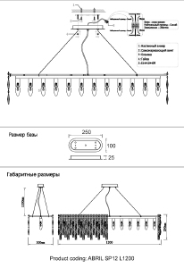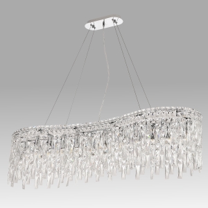 Допускается отличие страны-изготовителя, указанной в характеристиках. Линии производства могут находиться в нескольких государствах. Это не влияет на качество изготовления товара: все заводы данного бренда работают по общим стандартам, а готовые изделия проходят соответствующий контроль.Испания Коллекция Abril ЦветЦвет арматуры Хром Цвет Хром Материал арматуры Металл Цвет плафона прозрачный Материал плафона Хрусталь РазмерыВысота (мм) 1515 Длина (мм) 1200 Высота минимальная (мм) 290 Ширина (мм) 300 ЭлектрикаКоличество ламп (шт) 12 Цоколь E14 Мощность лампы (Вт) 40 Дополнительная информацияСтепень защиты (IP) 20 Тип подвеса На тросах -