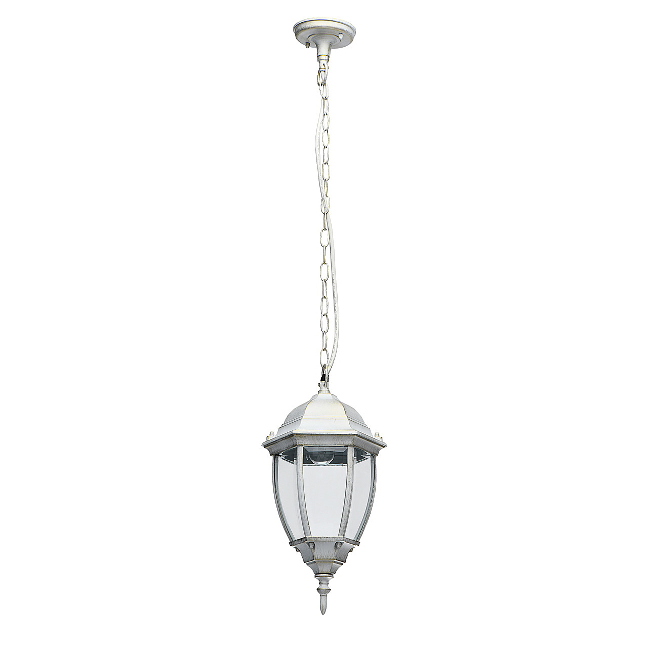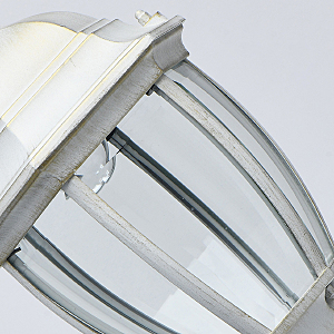 Классическая форма белого цвета с патиной придает античный характер освещению.Высокий показатель IP44 защиты от влажности и пыли.Стеклянные фрагменты плотно соединены, образуют геометричный плафон.Система отвода конденсата гарантирует долгий срок службы источников света.Декоративные элементы в старинном стиле создают дополнительный акцент.Полная семья из бра, подвеса, столба на 1 и 2 лампы для комплексного освещения ландшафта.