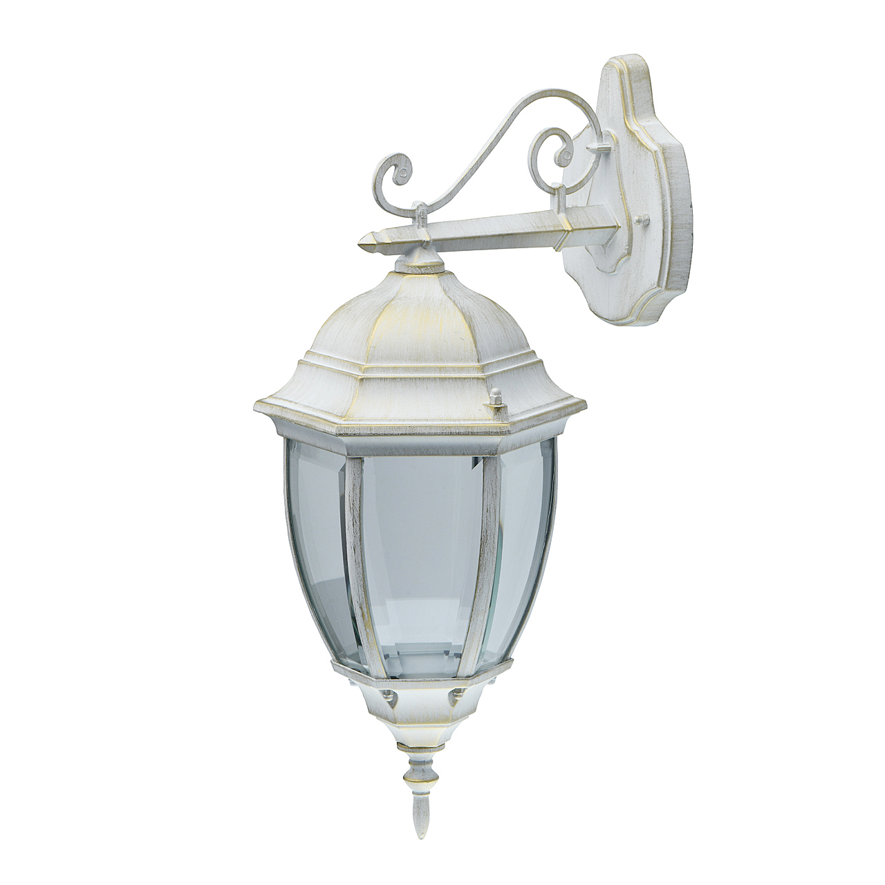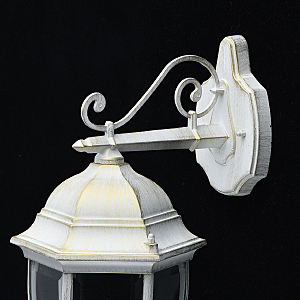 Классическая форма белого цвета с патиной придает античный характер освещению.Высокий показатель IP44 защиты от влажности и пыли.Стеклянные фрагменты плотно соединены, образуют геометричный плафон.Система отвода конденсата гарантирует долгий срок службы источников света.Декоративные элементы в старинном стиле создают дополнительный акцент.Полная семья из бра, подвеса, столба на 1 и 2 лампы для комплексного освещения ландшафта.