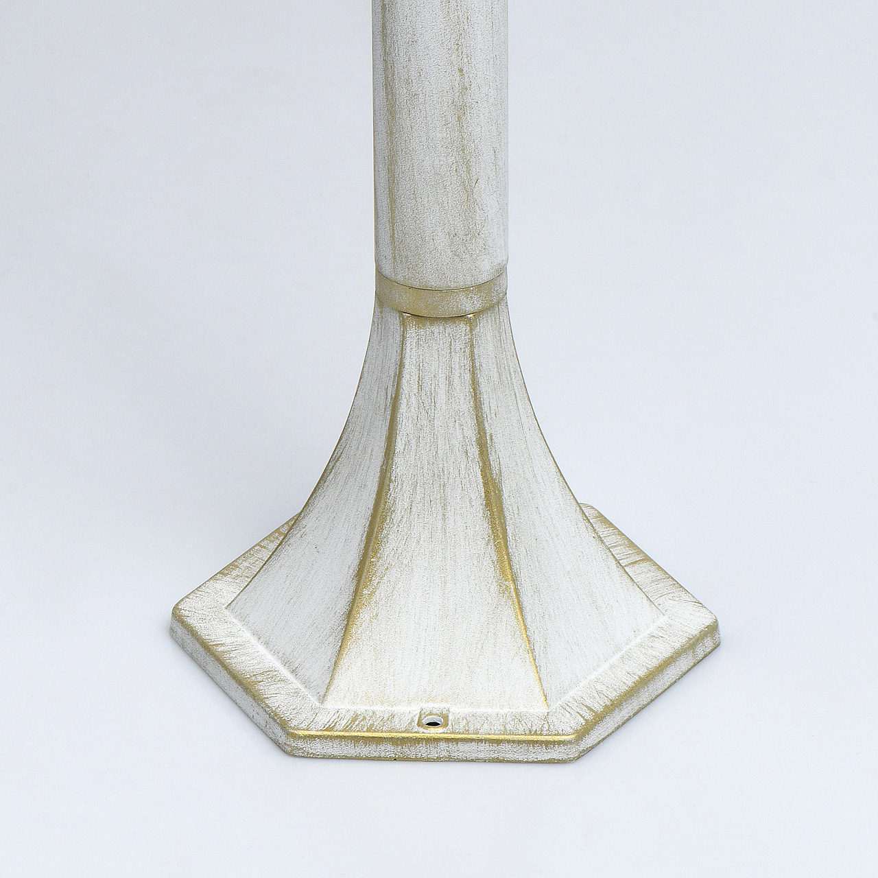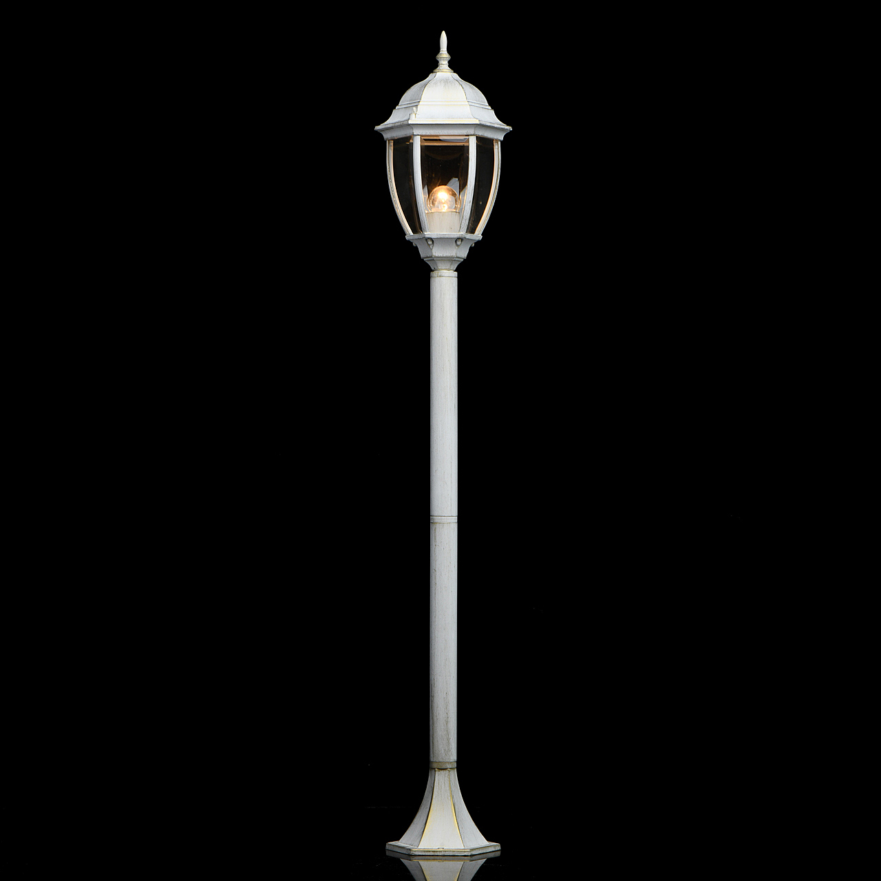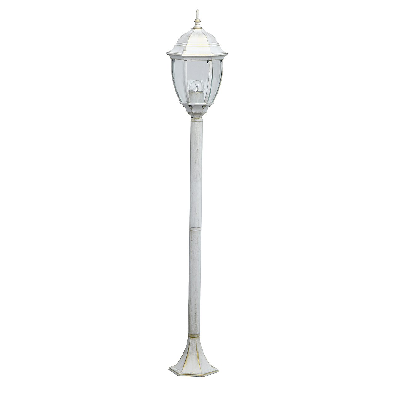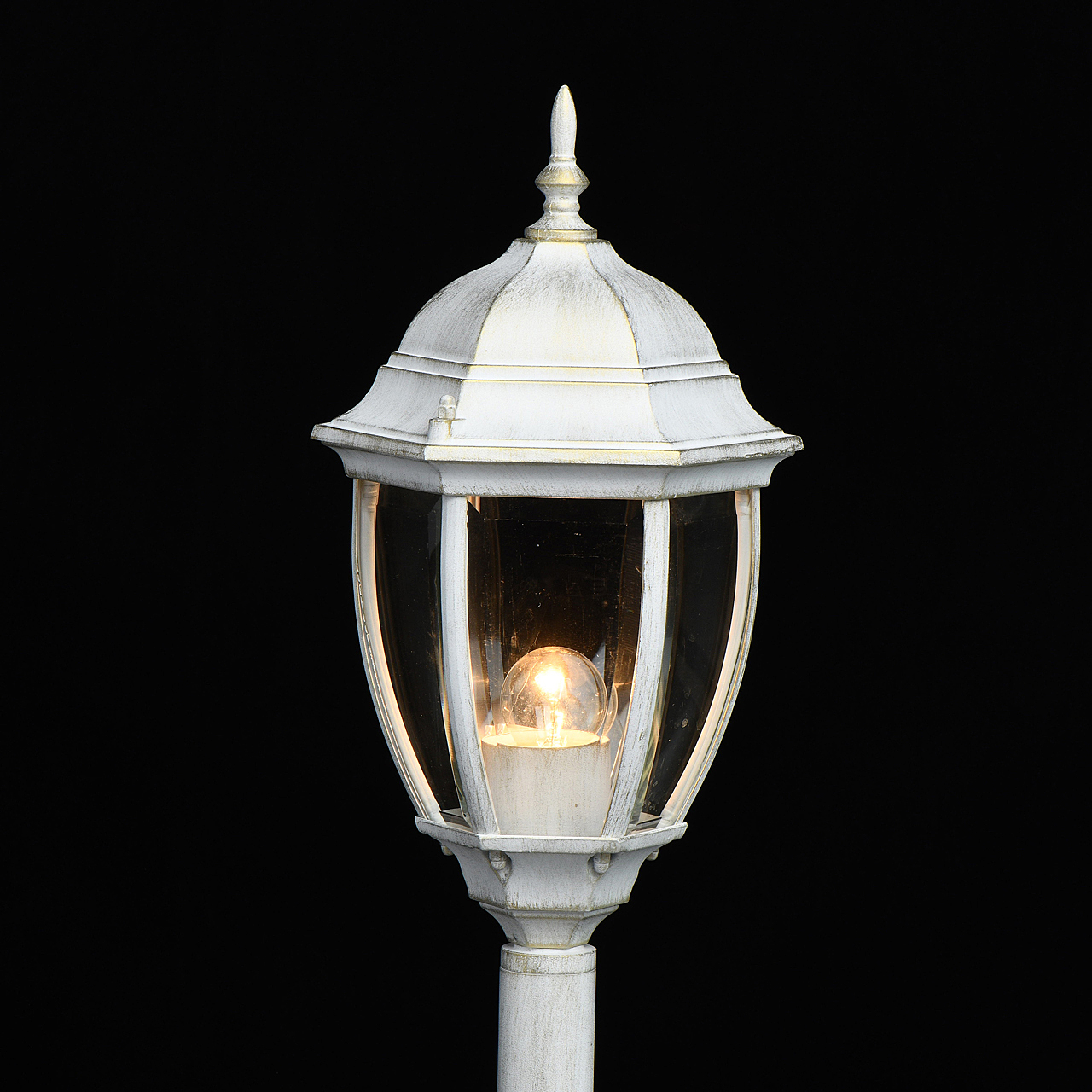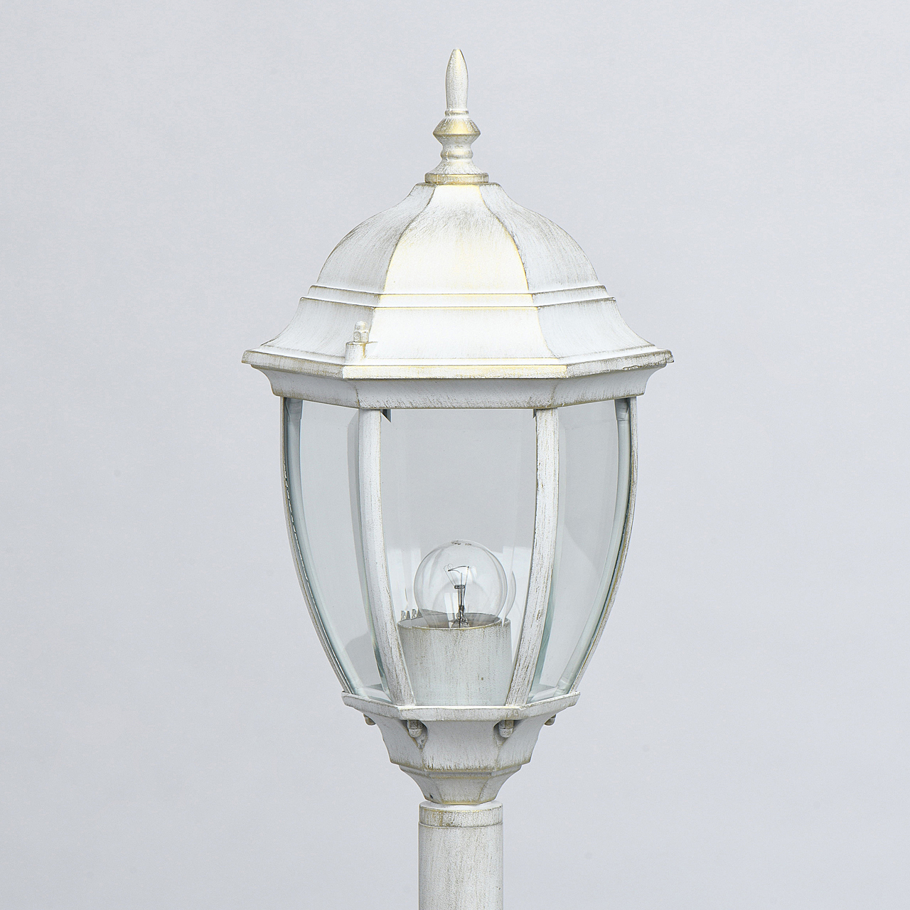 Классическая форма белого цвета с патиной придает античный характер освещению.Высокий показатель IP44 защиты от влажности и пыли.Стеклянные фрагменты плотно соединены, образуют геометричный плафон.Система отвода конденсата гарантирует долгий срок службы источников света.Декоративные элементы в старинном стиле создают дополнительный акцент.Полная семья из бра, подвеса, столба на 1 и 2 лампы для комплексного освещения ландшафта.