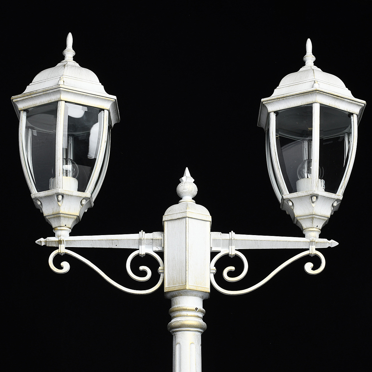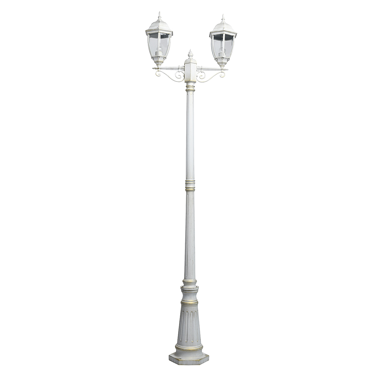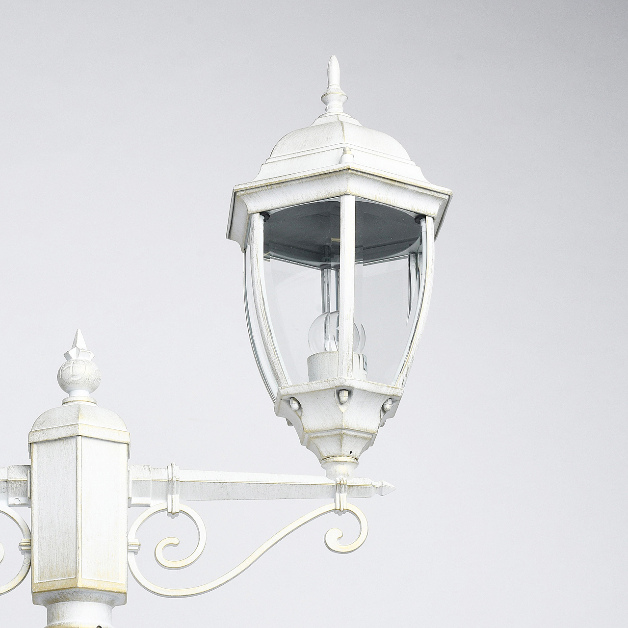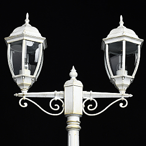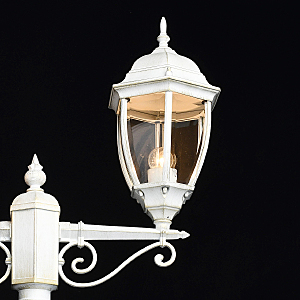 Классическая форма белого цвета с патиной придает античный характер освещению.Высокий показатель IP44 защиты от влажности и пыли.Стеклянные фрагменты плотно соединены, образуют геометричный плафон.Система отвода конденсата гарантирует долгий срок службы источников света.Декоративные элементы в старинном стиле создают дополнительный акцент.Полная семья из бра, подвеса, столба на 1 и 2 лампы для комплексного освещения ландшафта.