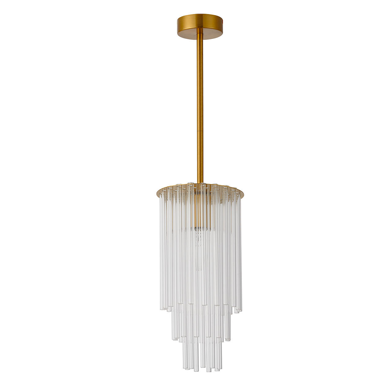 Гальваника в цвет латуни придает люстре благородный вид. Стеклянный декор создает уникальную игру света и тени и создает особый шарм и уникальность. Светильник идеально подходит для расслабляющих вечеров или романтических ужинов. Заменяемые источники света удобны в эксплуатации.