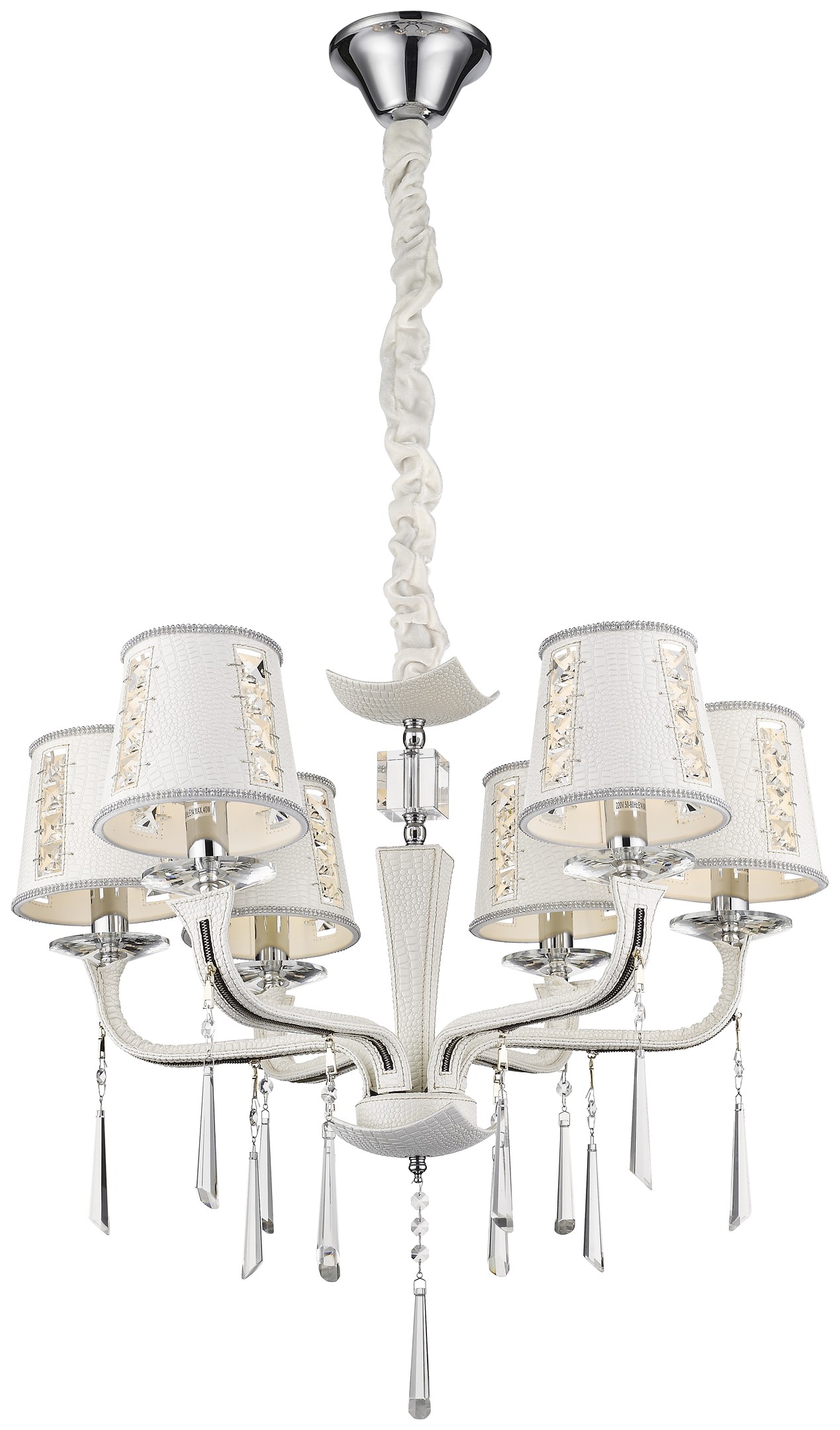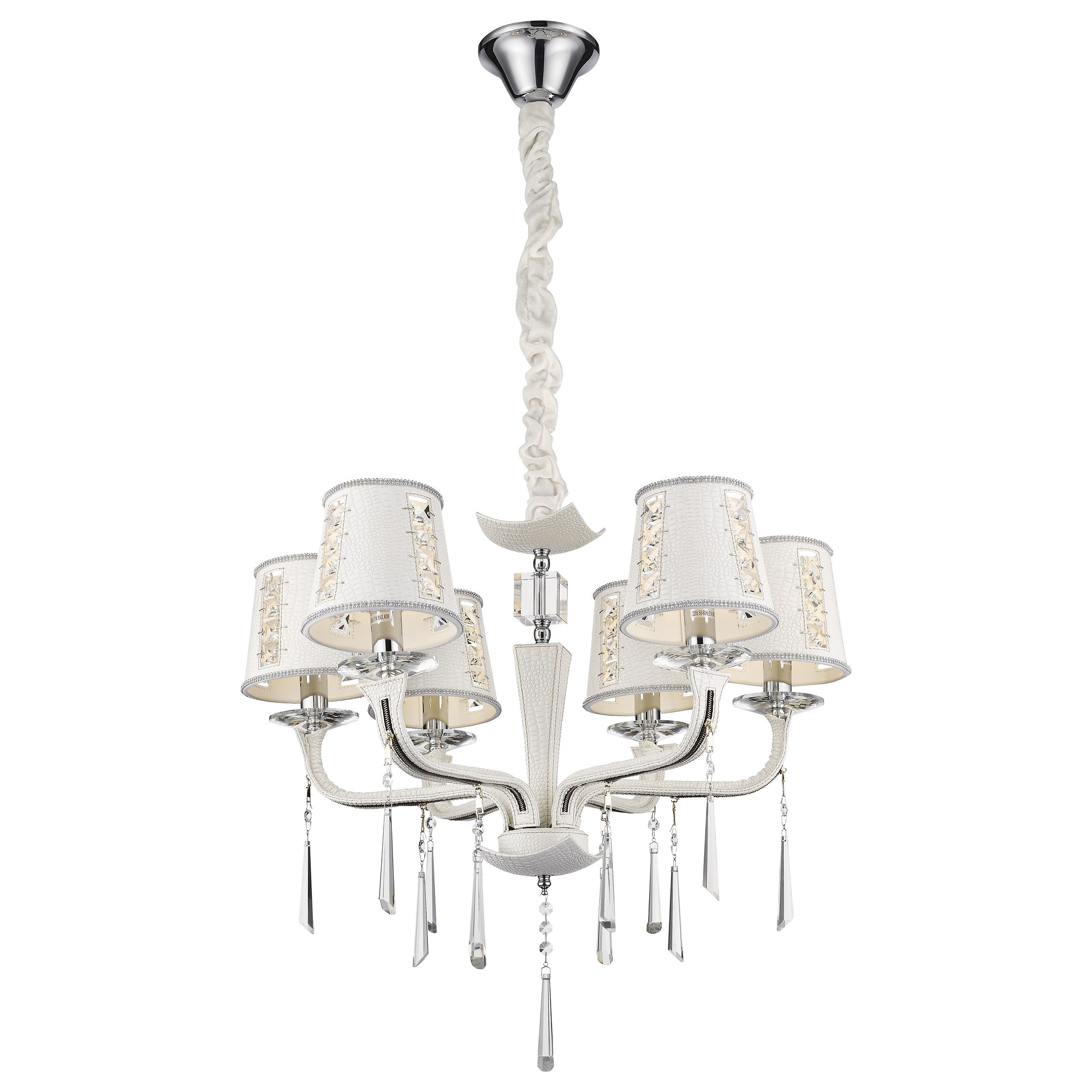Допускается отличие страны-изготовителя, указанной в характеристиках. Линии производства могут находиться в нескольких государствах. Это не влияет на качество изготовления товара: все заводы данного бренда работают по общим стандартам, а готовые изделия проходят соответствующий контроль.Италия Коллекция Adelina ЦветЦвет арматуры Хром, Белый Цвет Белый Материал арматуры Металл, Кожа Цвет плафона Белый Материал декора Хрусталь Материал плафона Хрусталь, Кожа РазмерыВысота (мм) 1100 Длина (мм) 680 Диаметр (мм) 680 Высота минимальная (мм) 620 Ширина (мм) 680 ЭлектрикаКоличество ламп (шт) 6 Цоколь E14 Лампочки в комплекте Нет в комплекте Мощность лампы (Вт) 40 Напряжение (В) 220 Площадь освещения 12 Дополнительная информацияСпособ крепления Крюк Степень защиты (IP) IP20 Тип подвеса На цепи -