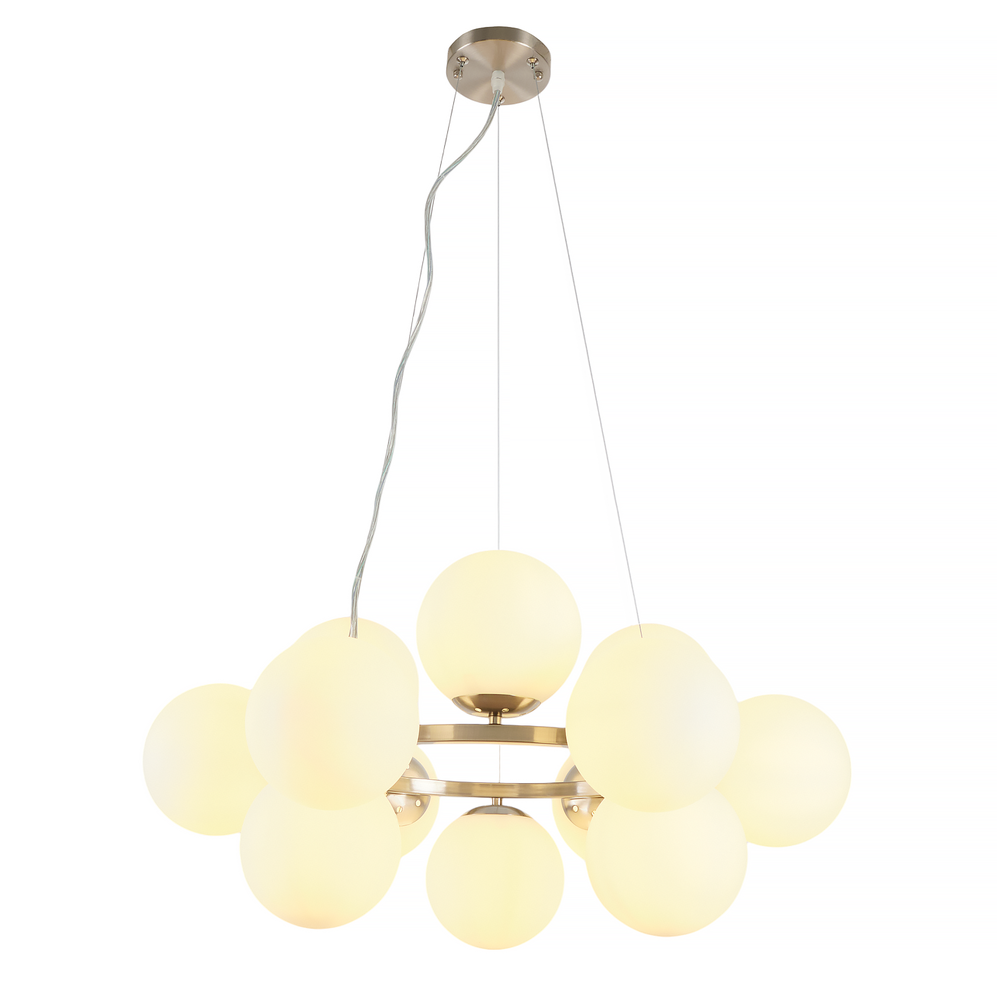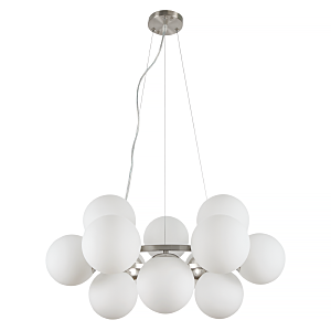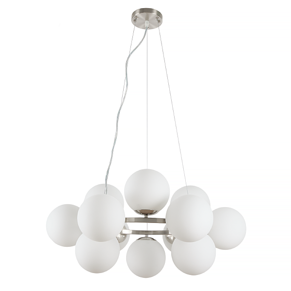 Допускается отличие страны-изготовителя, указанной в характеристиках. Линии производства могут находиться в нескольких государствах. Это не влияет на качество изготовления товара: все заводы данного бренда работают по общим стандартам, а готовые изделия проходят соответствующий контроль.Россия Коллекция Aerton ЦветЦвет арматуры Никель Цвет Никель Материал арматуры Металл Цвет плафона Белый Материал плафона Стекло РазмерыВысота (мм) 1120 Длина (мм) 710 Диаметр (мм) 710 Высота минимальная (мм) 340 Ширина (мм) 710 ЭлектрикаКоличество ламп (шт) 12 Цоколь E27 Лампочки в комплекте Нет в комплекте Мощность лампы (Вт) 60 Общая мощность (Вт) 720 Напряжение (В) 220 Площадь освещения 15 Дополнительная информацияСпособ крепления Планка Степень защиты (IP) IP20 Тип подвеса На тросах -