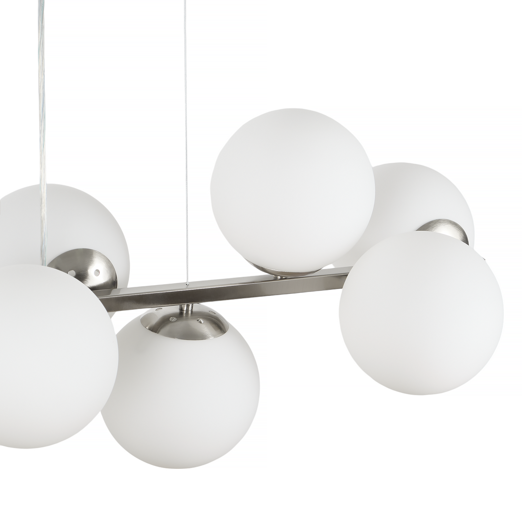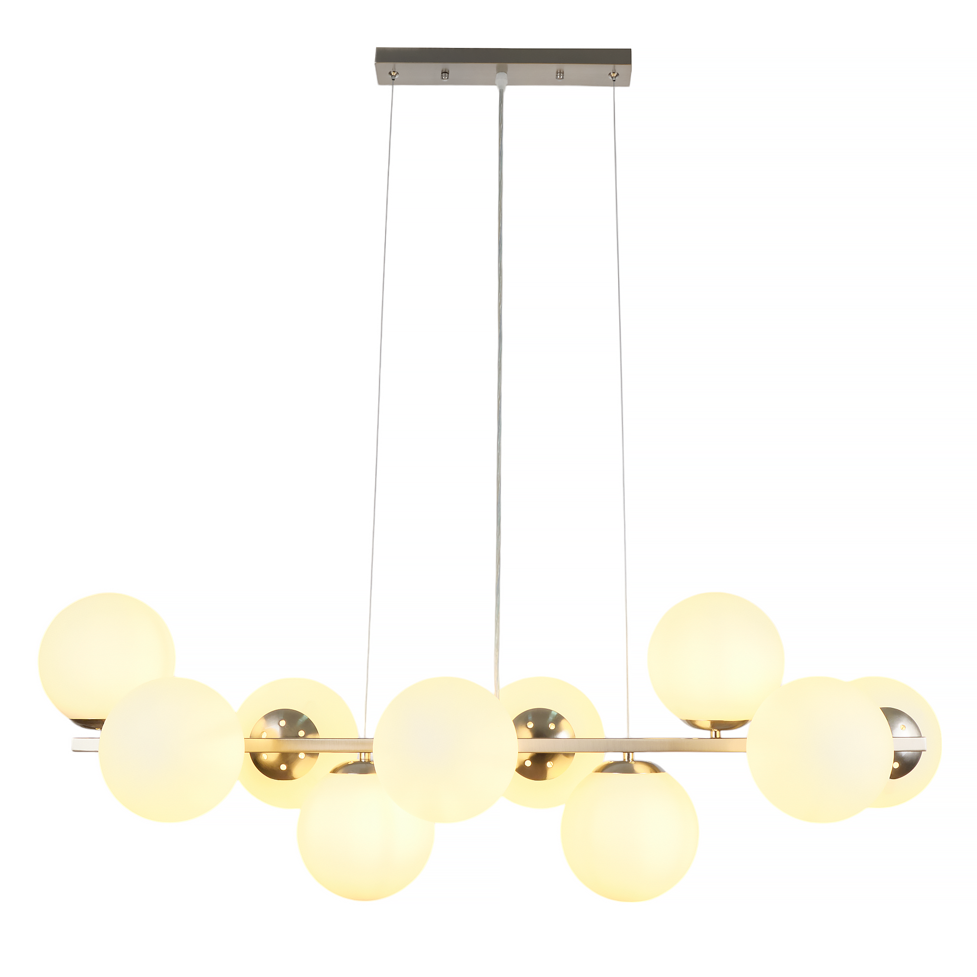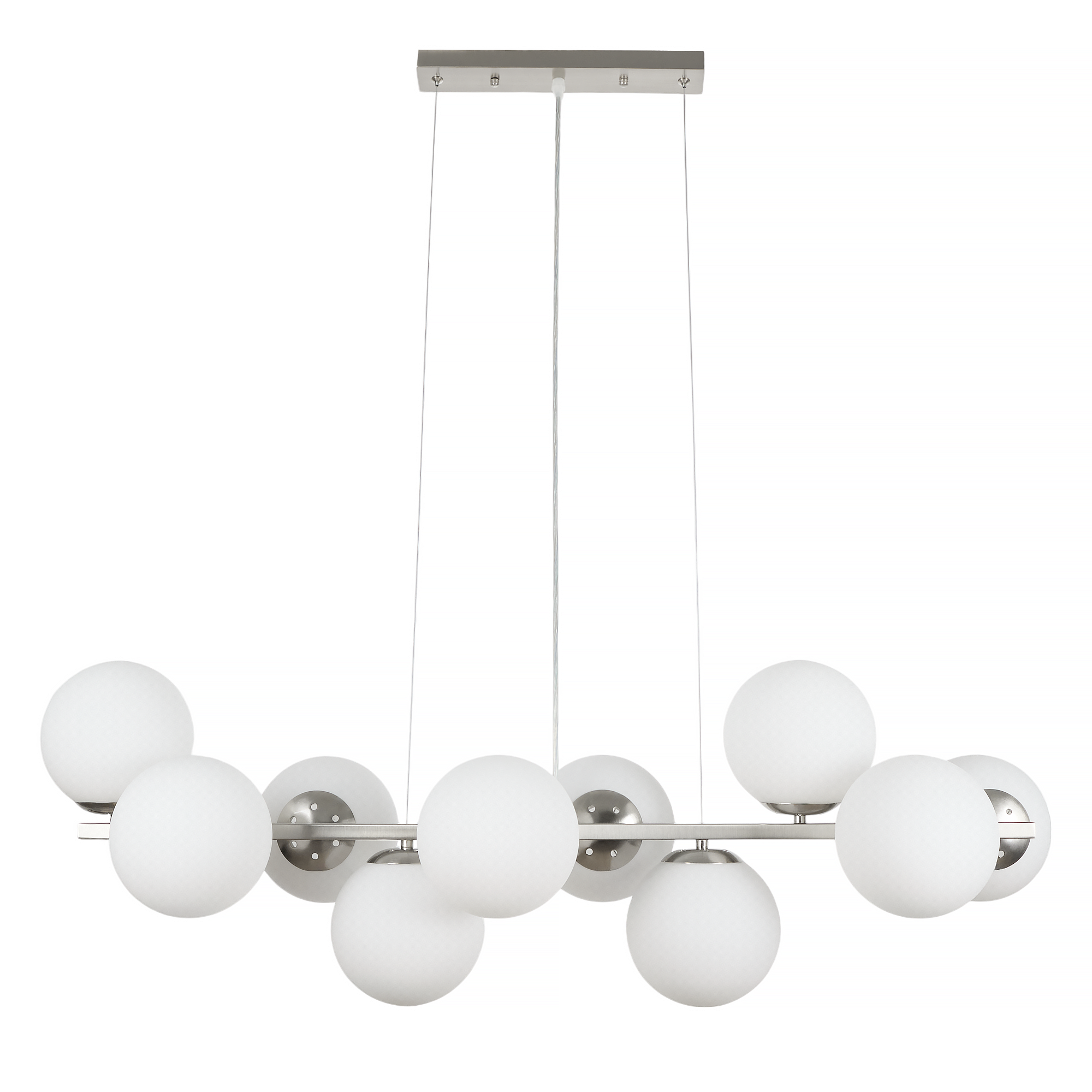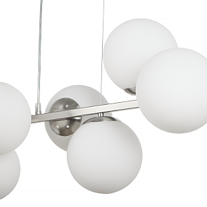 Допускается отличие страны-изготовителя, указанной в характеристиках. Линии производства могут находиться в нескольких государствах. Это не влияет на качество изготовления товара: все заводы данного бренда работают по общим стандартам, а готовые изделия проходят соответствующий контроль.Россия Коллекция Aerton ЦветЦвет арматуры Никель Цвет Никель Материал арматуры Металл Цвет плафона Белый Материал плафона Стекло РазмерыВысота (мм) 1120 Длина (мм) 1000 Высота минимальная (мм) 340 Ширина (мм) 340 ЭлектрикаКоличество ламп (шт) 10 Цоколь E27 Лампочки в комплекте Нет в комплекте Мощность лампы (Вт) 60 Общая мощность (Вт) 600 Напряжение (В) 220 Площадь освещения 12 Дополнительная информацияСпособ крепления Планка Степень защиты (IP) IP20 Тип подвеса На тросах -