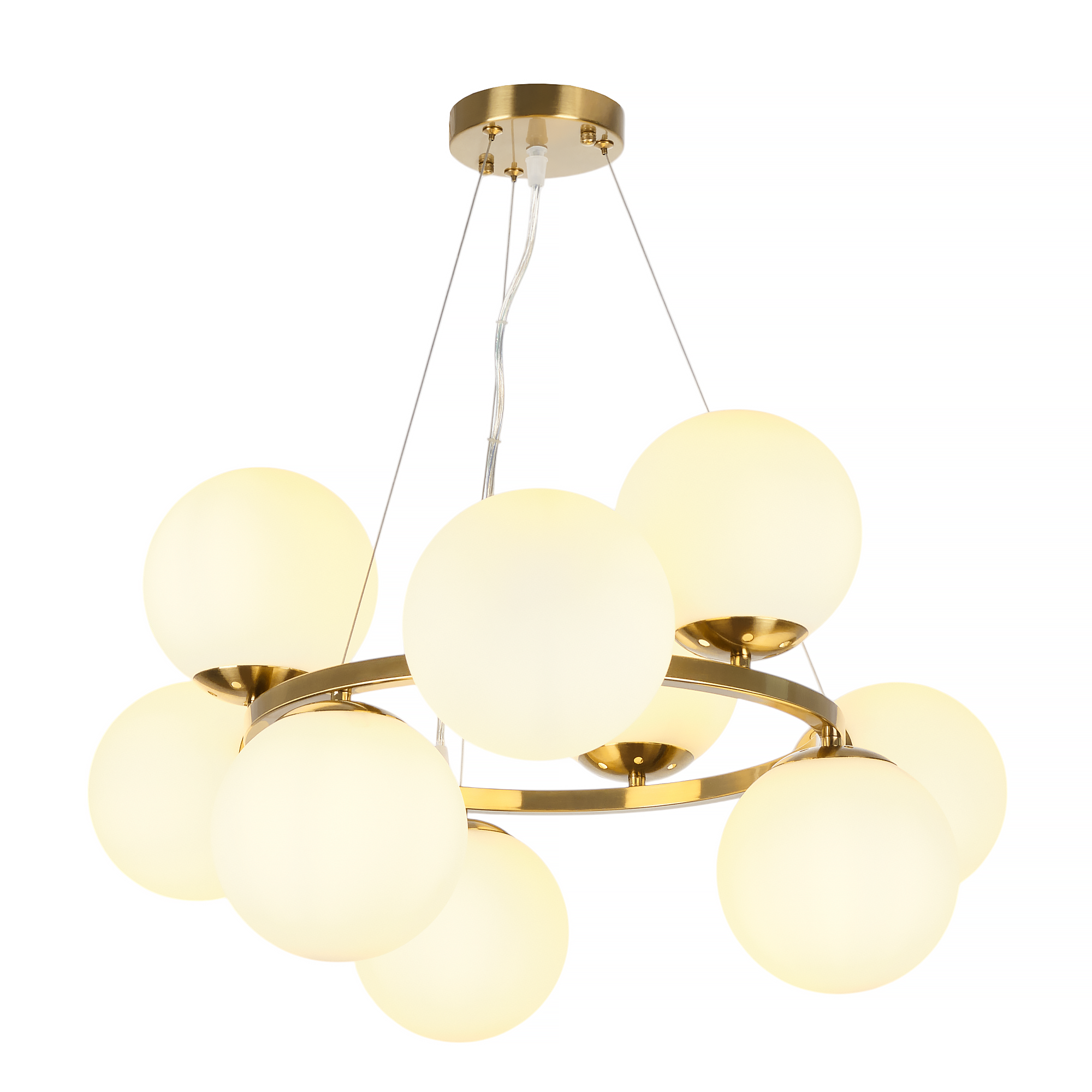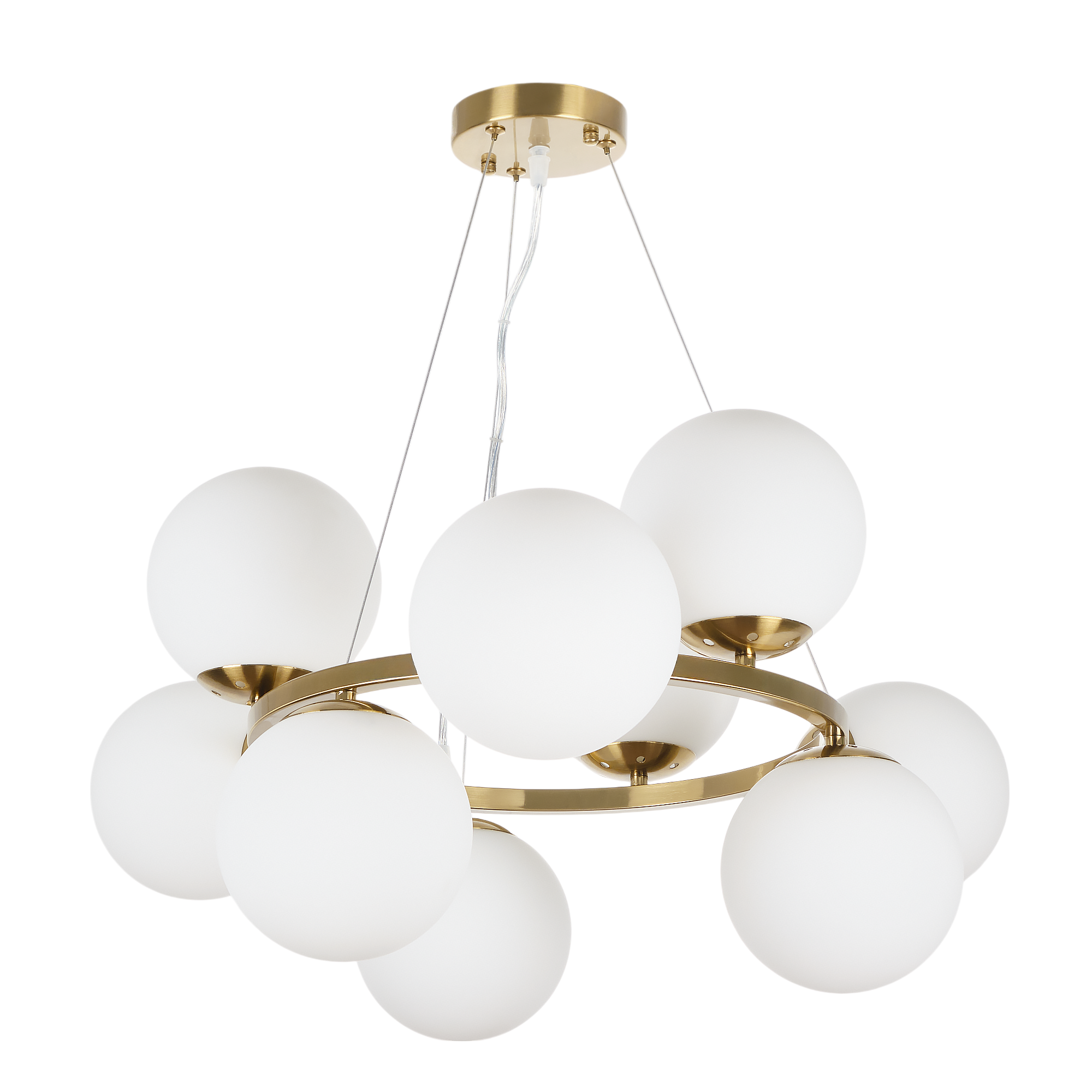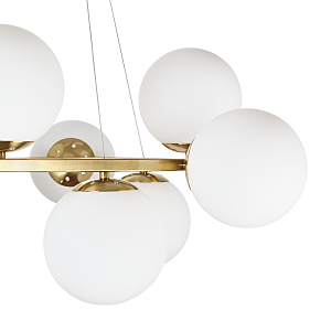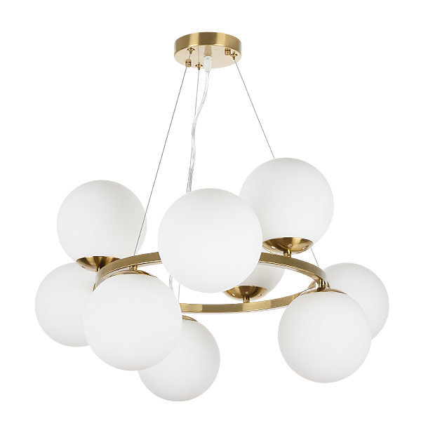 Допускается отличие страны-изготовителя, указанной в характеристиках. Линии производства могут находиться в нескольких государствах. Это не влияет на качество изготовления товара: все заводы данного бренда работают по общим стандартам, а готовые изделия проходят соответствующий контроль.Россия Коллекция Aerton ЦветЦвет арматуры Латунь Цвет Латунь Материал арматуры Металл Цвет плафона Белый Материал плафона Стекло РазмерыВысота (мм) 1120 Длина (мм) 710 Диаметр (мм) 710 Высота минимальная (мм) 340 Ширина (мм) 710 ЭлектрикаКоличество ламп (шт) 9 Цоколь E27 Лампочки в комплекте Нет в комплекте Мощность лампы (Вт) 60 Общая мощность (Вт) 540 Напряжение (В) 220 Дополнительная информацияСпособ крепления Планка Степень защиты (IP) IP20 Вес (Кг) 3,70 Тип подвеса На тросах -
