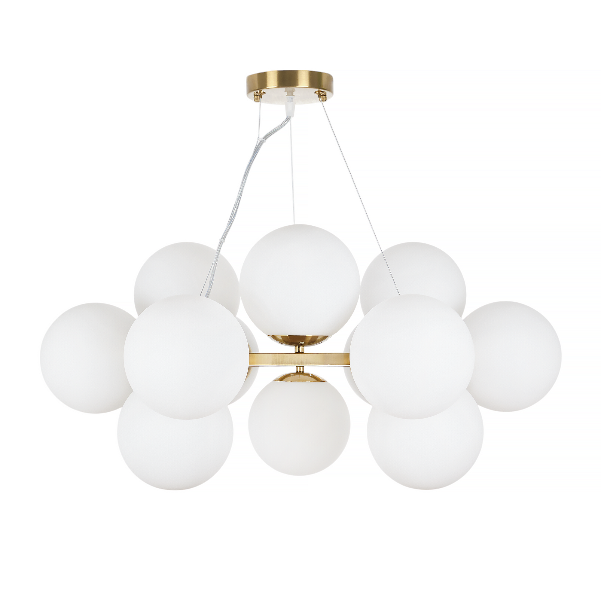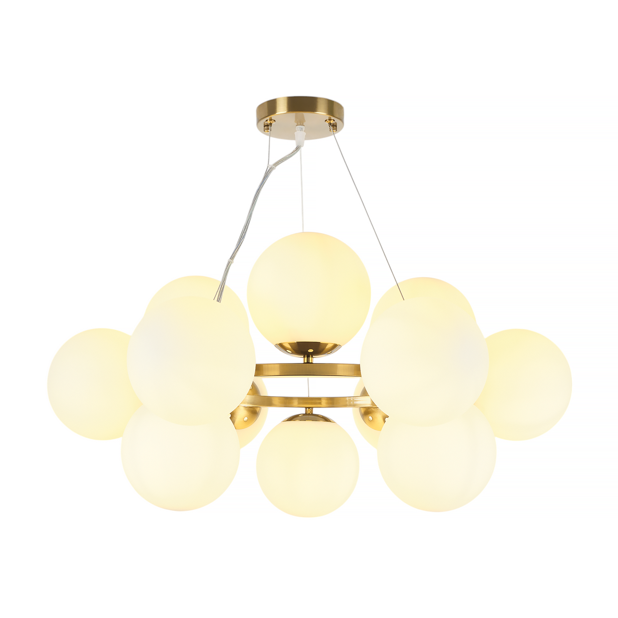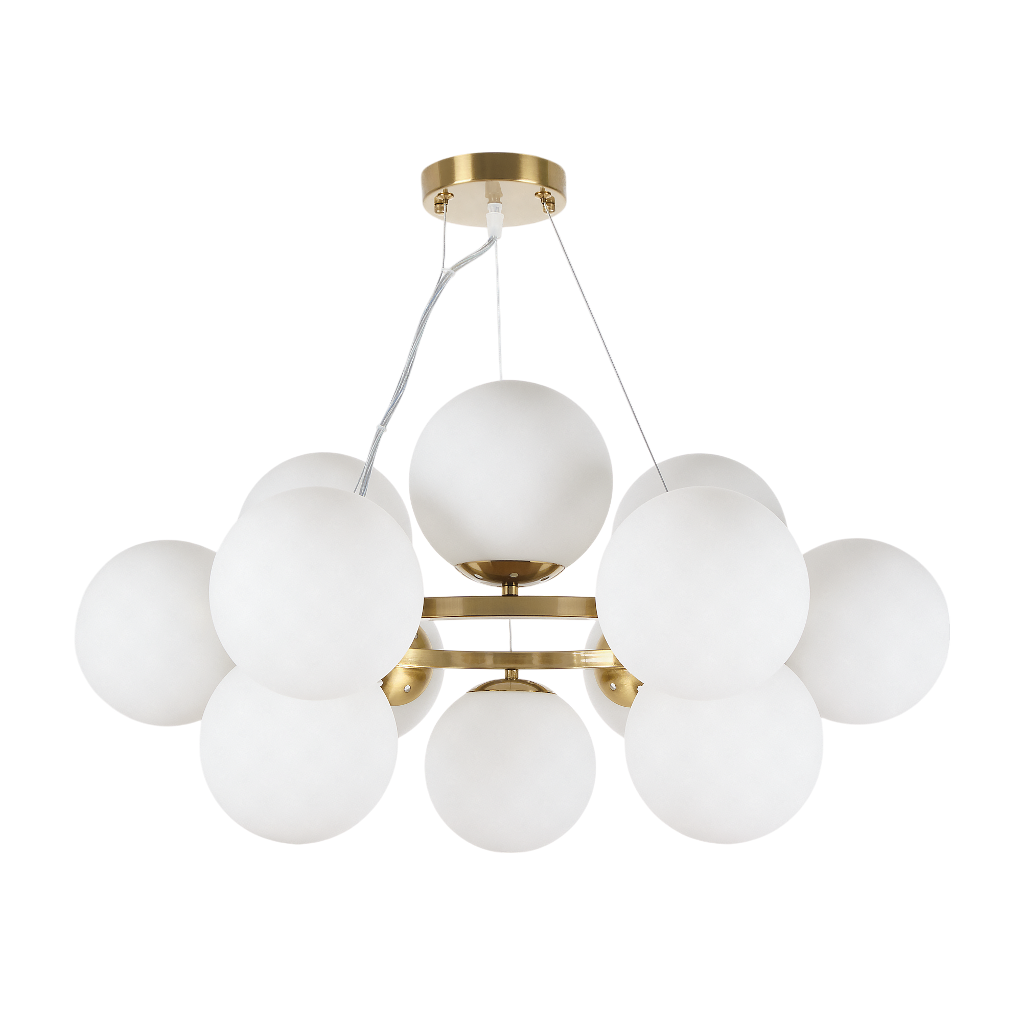 Допускается отличие страны-изготовителя, указанной в характеристиках. Линии производства могут находиться в нескольких государствах. Это не влияет на качество изготовления товара: все заводы данного бренда работают по общим стандартам, а готовые изделия проходят соответствующий контроль.Россия Коллекция Aerton ЦветЦвет арматуры Латунь Цвет Латунь Материал арматуры Металл Цвет плафона Белый Материал плафона Стекло РазмерыВысота (мм) 1120 Длина (мм) 710 Диаметр (мм) 710 Высота минимальная (мм) 340 Ширина (мм) 710 ЭлектрикаКоличество ламп (шт) 12 Цоколь E27 Лампочки в комплекте Нет в комплекте Мощность лампы (Вт) 60 Общая мощность (Вт) 720 Напряжение (В) 220 Дополнительная информацияСпособ крепления Планка Степень защиты (IP) IP20 Вес (Кг) 4,5 Тип подвеса На тросах -