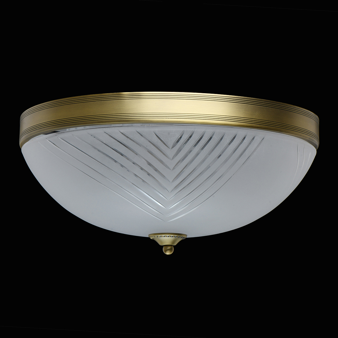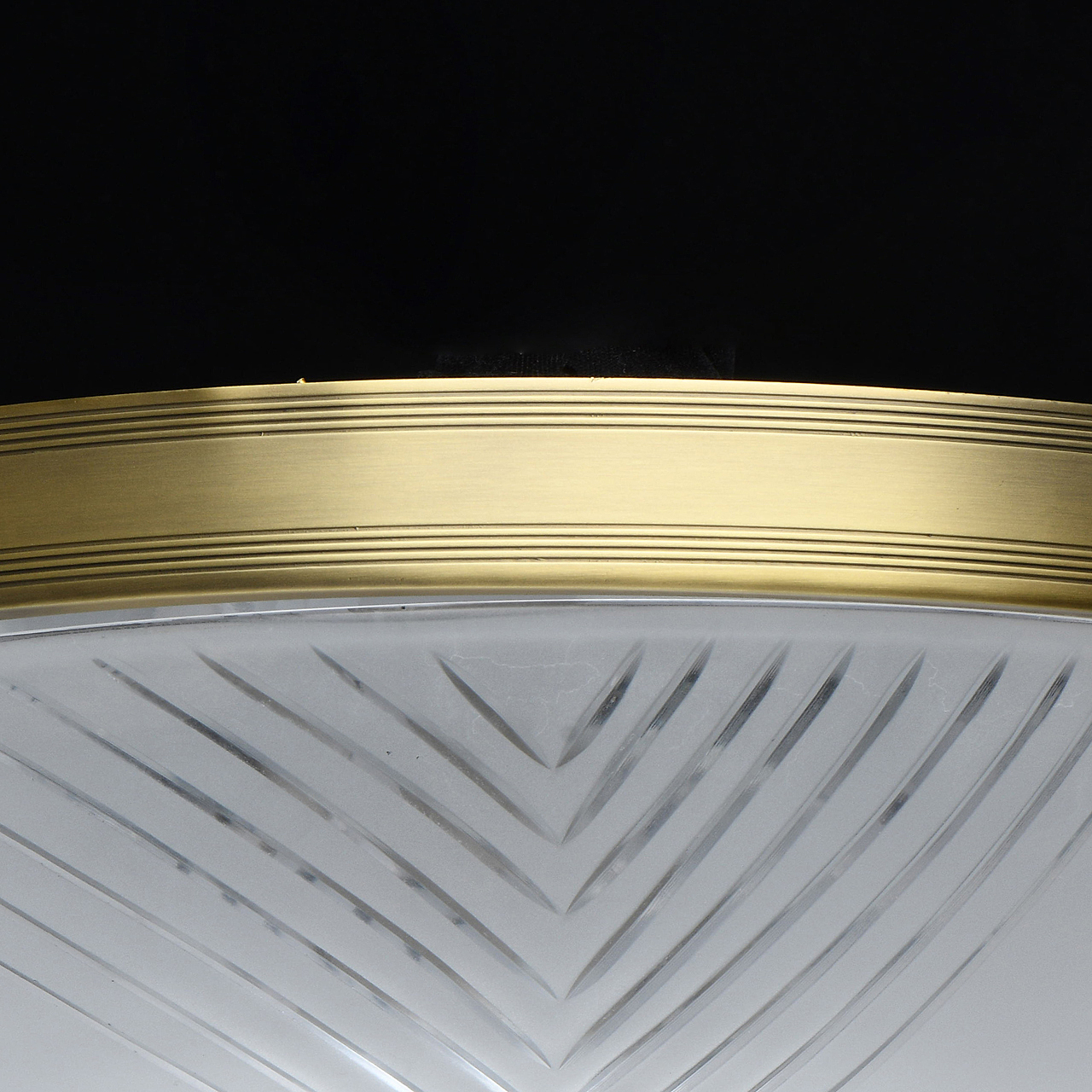 Классическая форма потолочного светильника из благородной латуни. Компактная высота модели идеальна для стандартной высоты потолка.Плафон матового стекла с алмазной гранью мягко рассеивает свет.Расширенная семья из бра, настольного света, подвесов на 5, 8 и 9 ламп и потолочного светильника.