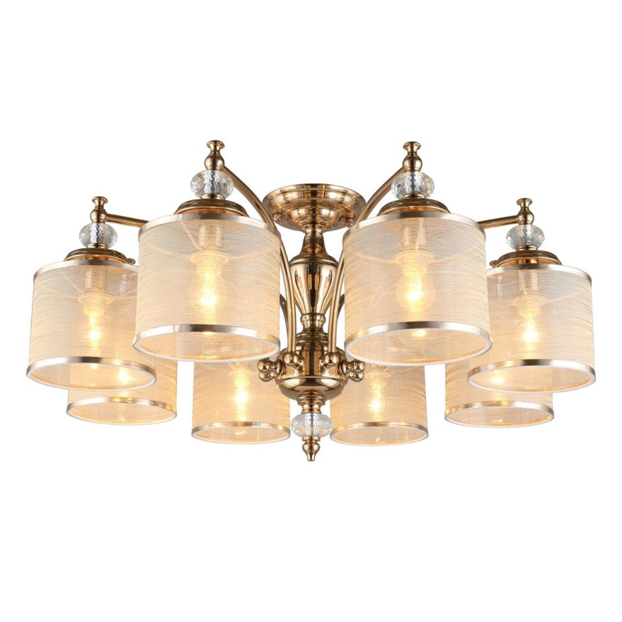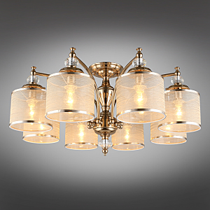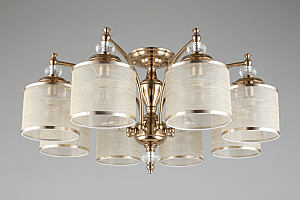 Допускается отличие страны-изготовителя, указанной в характеристиках. Линии производства могут находиться в нескольких государствах. Это не влияет на качество изготовления товара: все заводы данного бренда работают по общим стандартам, а готовые изделия проходят соответствующий контроль.Польша Коллекция Agata ЦветЦвет арматуры песочное золото Цвет Золото Материал арматуры Металл Цвет декора прозрачный Цвет плафона карамельный Материал декора Хрусталь Материал плафона ткань + пластик РазмерыВысота (мм) 380 Диаметр (мм) 780 Ширина (мм) 780 ЭлектрикаКоличество ламп (шт) 8 Цоколь E14 Лампочки в комплекте Нет в комплекте Мощность лампы (Вт) 40 Общая мощность (Вт) 320 Световой поток 3360 Дополнительная информацияСпособ крепления Планка Степень защиты (IP) IP20 Вес (Кг) 5.6 -