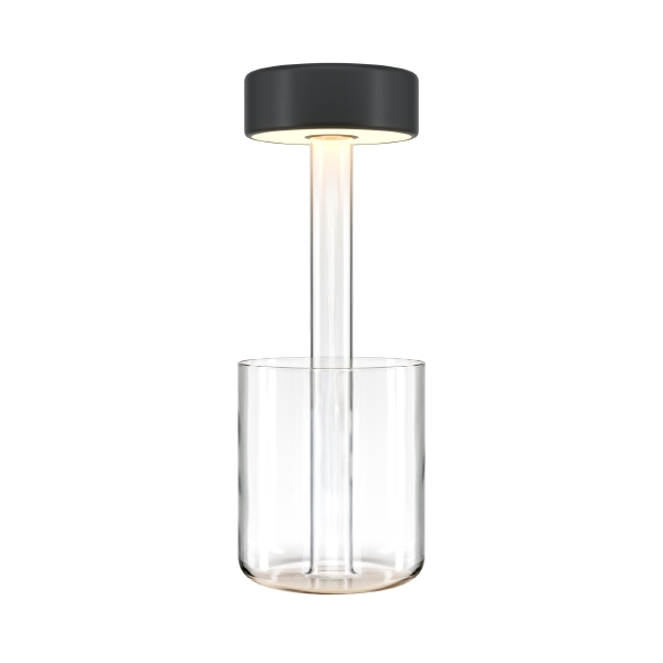 Портативный настольный светильник. Результат творческой коллаборации искусственного интелекта и предметного дизайнера. Два варанта корпуса светильника: с металлической тонкой ножкой на плоском круглом основании; со стеклянным основанием с интегрированной вазой. Плафон снимается с основания для удобного ухода за стеклянными элементами и подзарядки аккумулятора, расположенного в плафоне. Два варианта цвета стеклянных моделей - прозрачный и серый. Плафоны с рассеивателем из акрила в 3х цветах: черный, золотой, белый. Удобный сенсорный выключатель вверху плафона. Micro USB разъем для подзарядки скрыт в нижней части плафона. LED-источник света. Регулируемая цветовая температура от 2200К до 4000К.