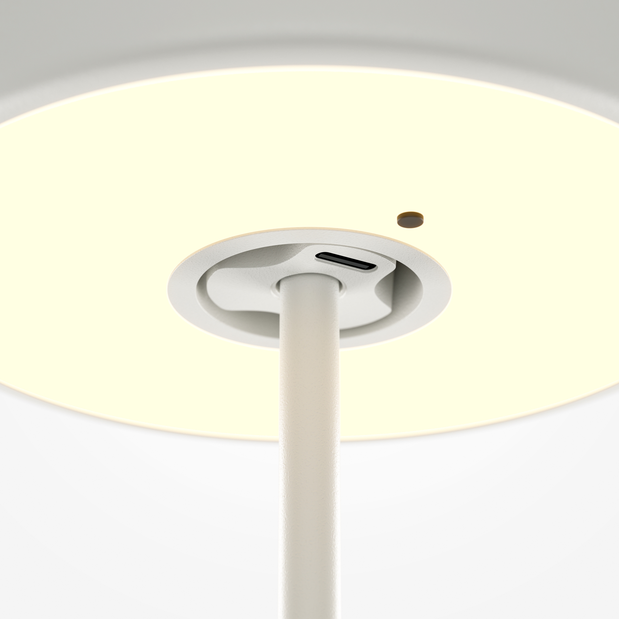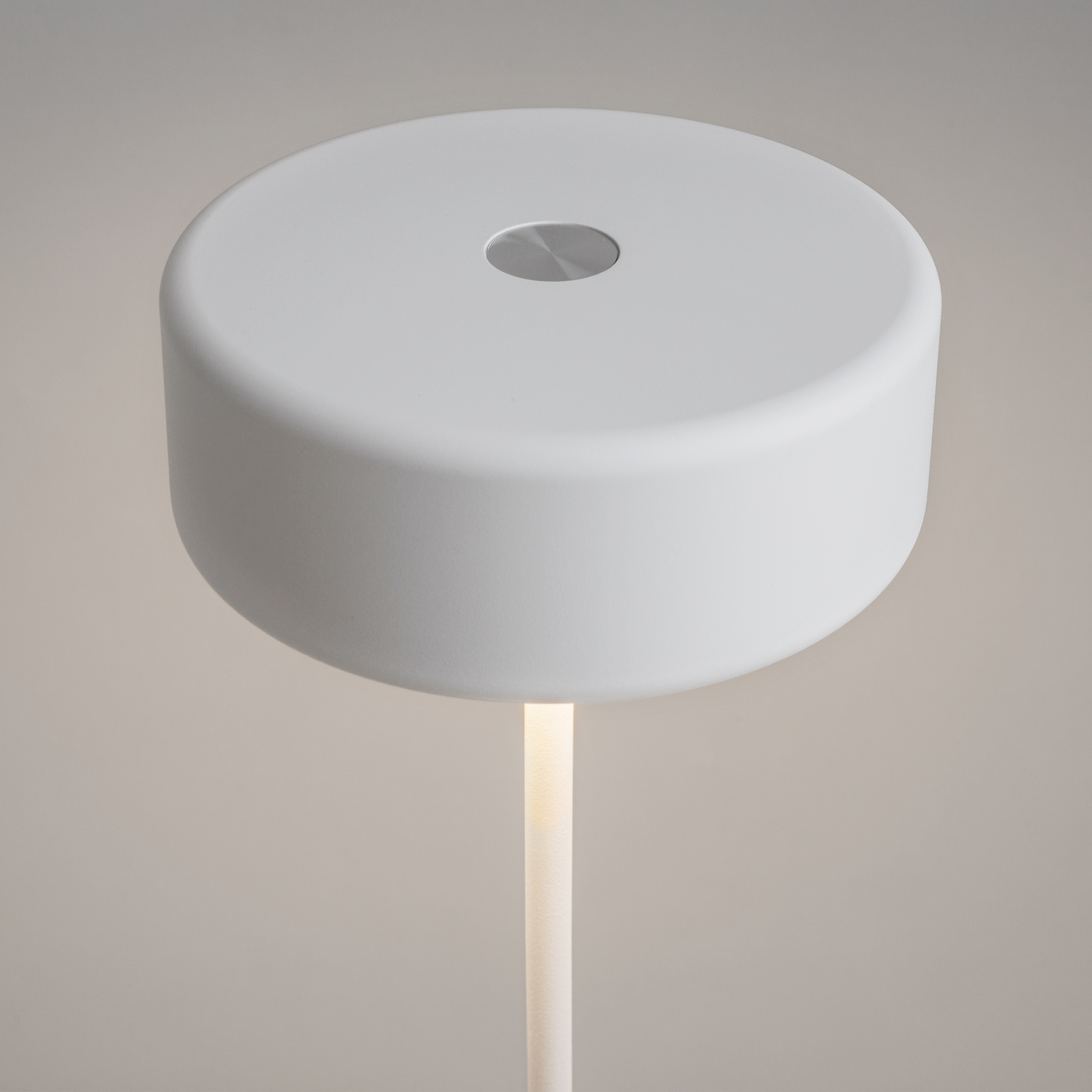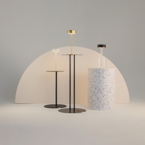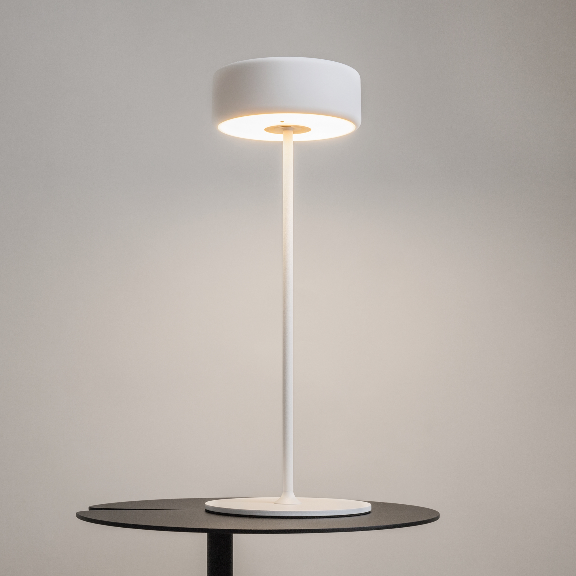 Портативный настольный светильник. Результат творческой коллаборации искусственного интелекта и предметного дизайнера. Два варанта корпуса светильника: с металлической тонкой ножкой на плоском круглом основании; со стеклянным основанием с интегрированной вазой. Плафон снимается с основания для удобного ухода за стеклянными элементами и подзарядки аккумулятора, расположенного в плафоне. Два варианта цвета стеклянных моделей - прозрачный и серый. Плафоны с рассеивателем из акрила в 3х цветах: черный, золотой, белый. Удобный сенсорный выключатель вверху плафона. Micro USB разъем для подзарядки скрыт в нижней части плафона. LED-источник света. Регулируемая цветовая температура от 2200К до 4000К.