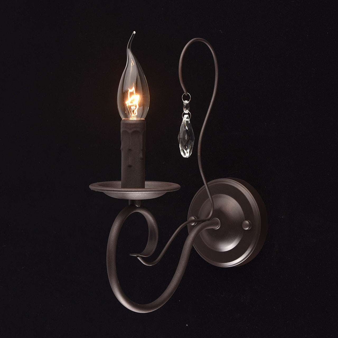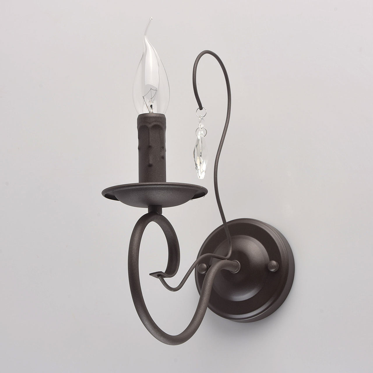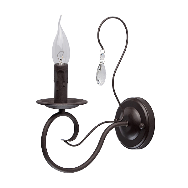 Бра из коллекции "Аида" выполнено в стиле легкой ковки. Основание из металла насыщенного цвета темного кофе дополнено грациозно изогнутым рожком и минималистичным витиеватым декором. Источник света в виде оплавленной свечи гармонично дополняют композицию. Строгая классическая красота и изящность - главные достоинства этого светильника.