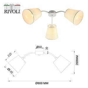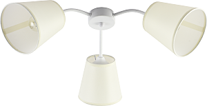 Белая 3-рожковая люстра с тканевыми плафонами - Rivoli Aimee (арт. 9162-303). Люстра в гостиную, люстра в спальню, люстра в детскую, люстра в кабинет. Лаконичный металлический корпус со стойким порошковым покрытием. Абажурная ткань плафонов допускает влажную уборку, не накапливает пыль. Свет ламп люстры направлен в разные стороны, что обеспечит равномерным освещением. Источники света в данную люстру – лампы Е27 60 Вт. Освещаемая площадь – до 9 м2.В коллекции Aimee итальянского бренда Rivoli представлены также люстры потолочные под 5 ламп – арт. 9162-305.