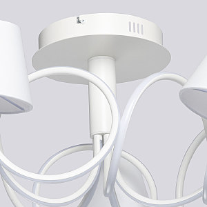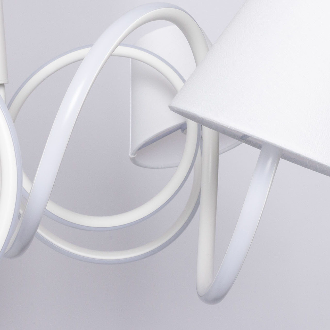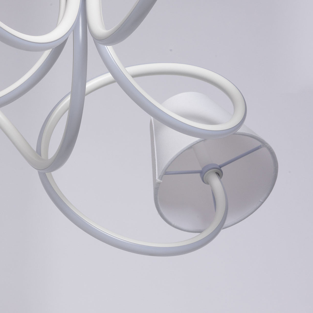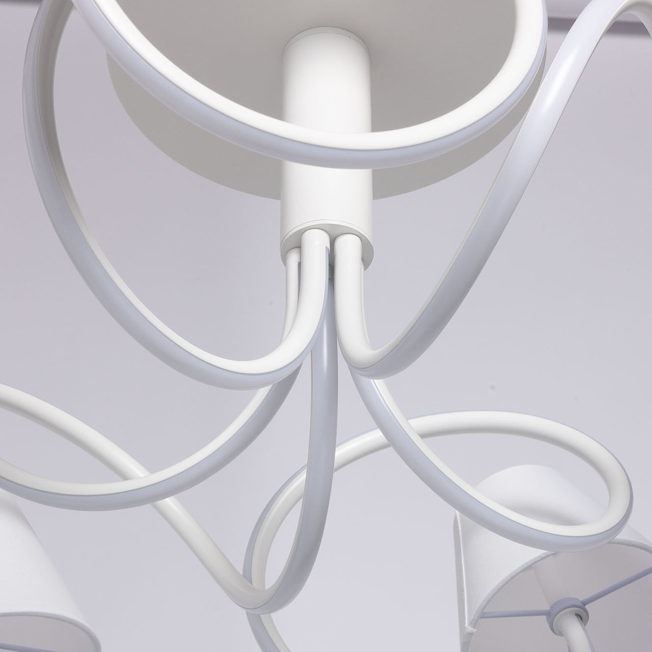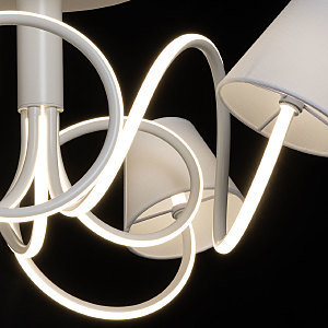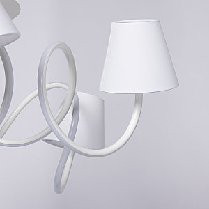 Белый цвет основания позволяет гармонично сочетать люстру с любым цветовым решением интерьера. Изящно изогнутые плафоны придают люстре оригинальность. Белый силикон плафонов мягко рассеивают свет. Эффектной изюминкой люстры является возможность комбинировать современное светодиодное освещение и классические текстильные абажуры. Благодаря стильному дизайну и высокому качеству, этот светильник станет прекрасным дополнением к любому интерьеру, принося в него индивидуальность и яркость. Светодиодные источники света экономичны и безопасны.