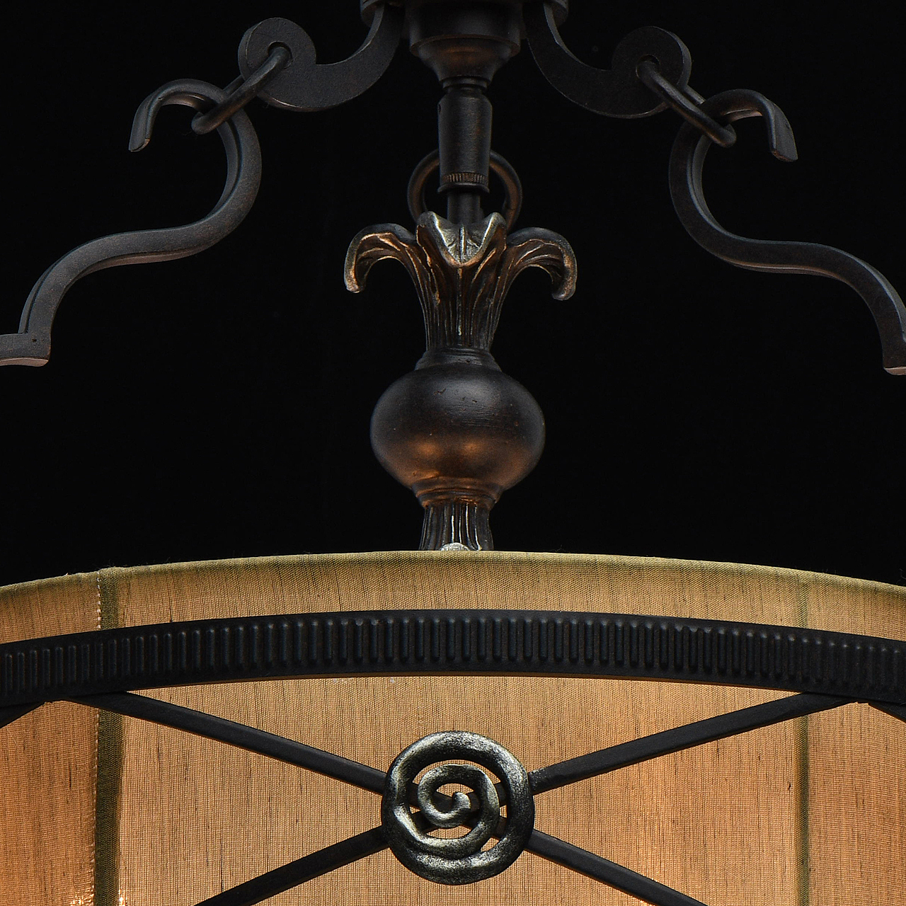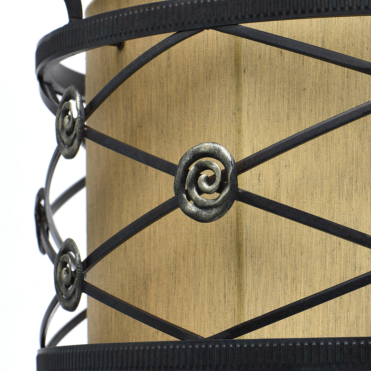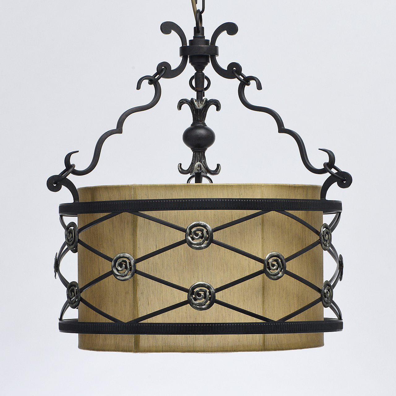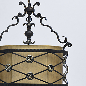 Полная семья из бра и подвесов на 1 и 4 лампы.Актуальный дизайн в сочетании кованого основания ручной работы и текстильного абажура. Тканевый абажур натурального цвета обеспечивает мягкий световой поток.Возможность регулировать высоту светильника за счёт звеньев цепи.